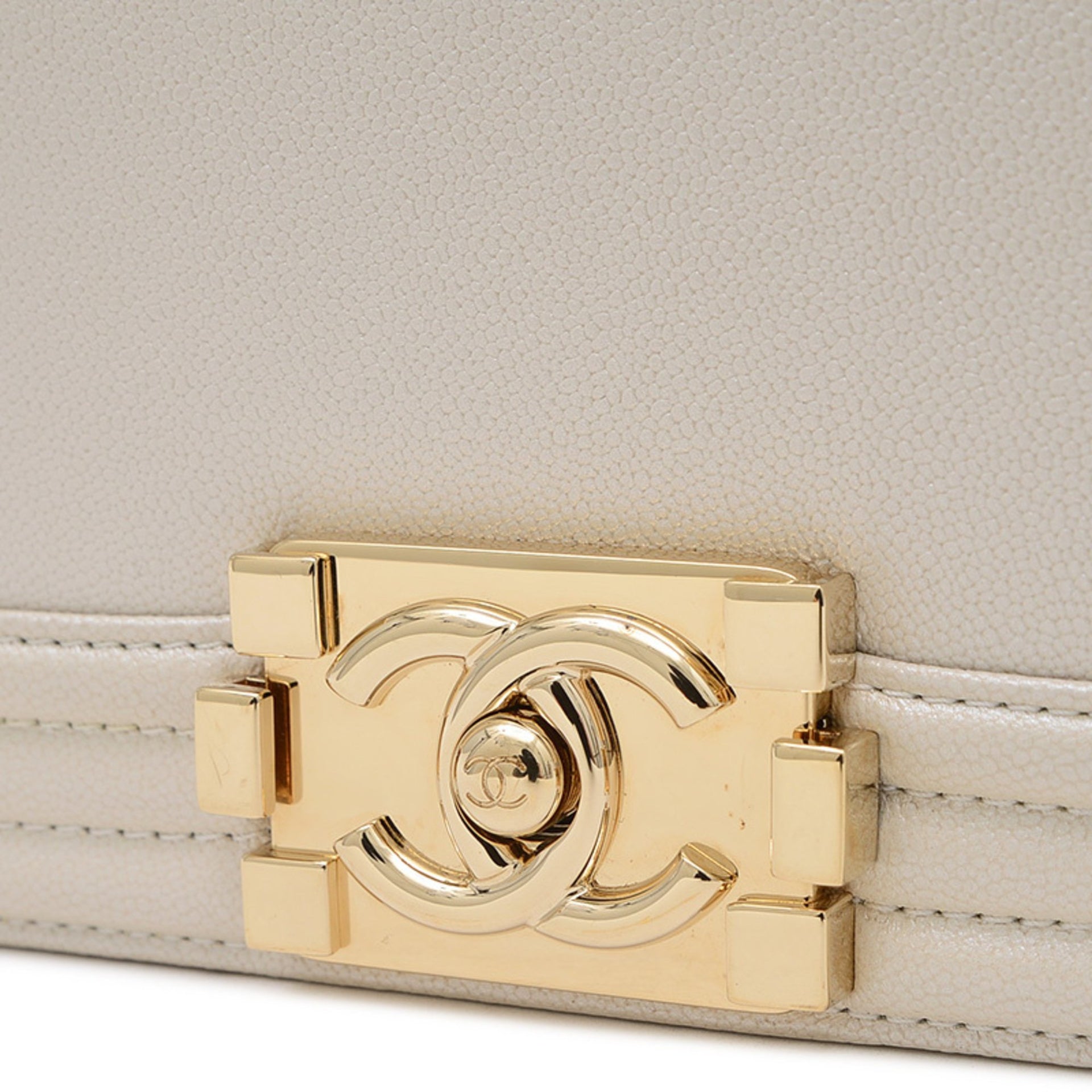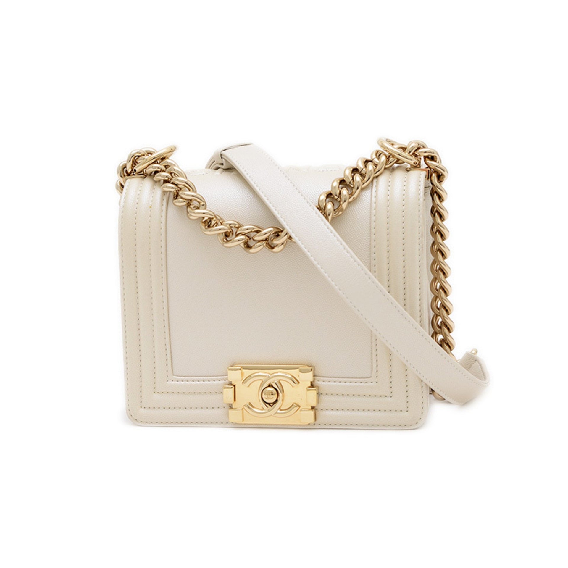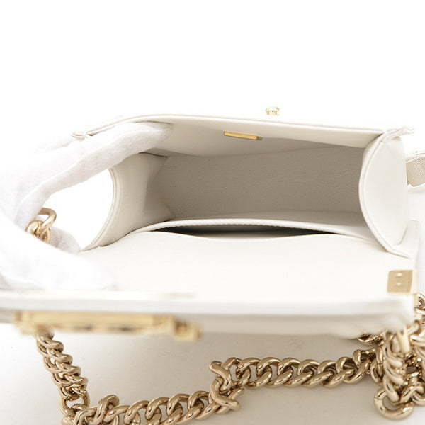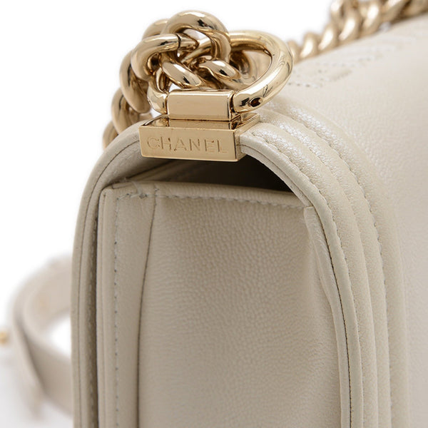 CHANEL Boy Chanel Chain Shoulder Bag in Pearl White Calfskin with Gold Hardware AS3018 BP