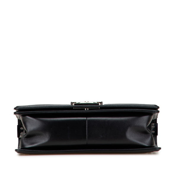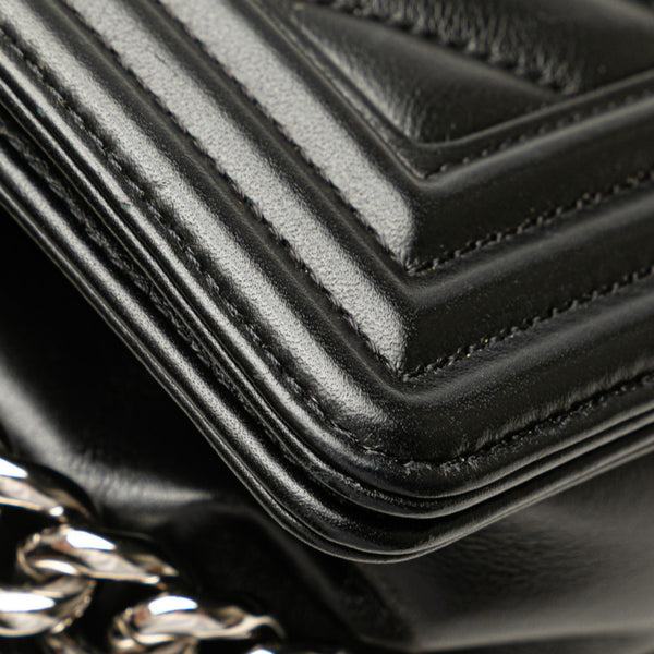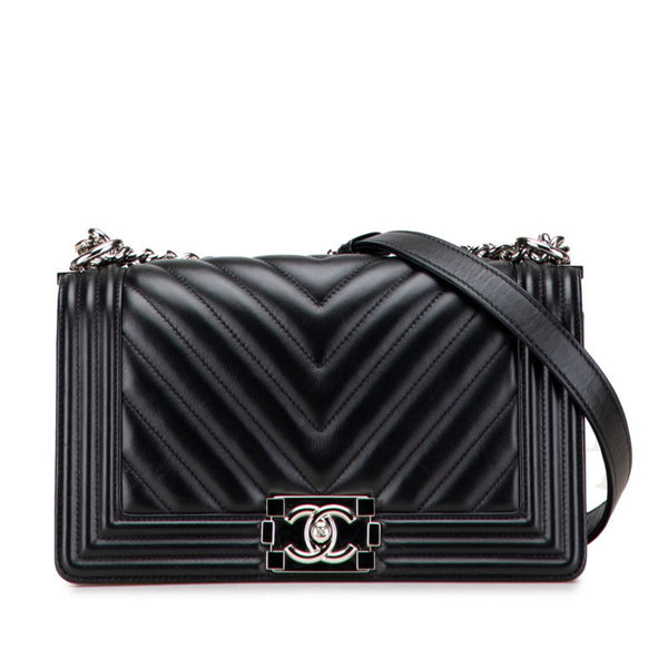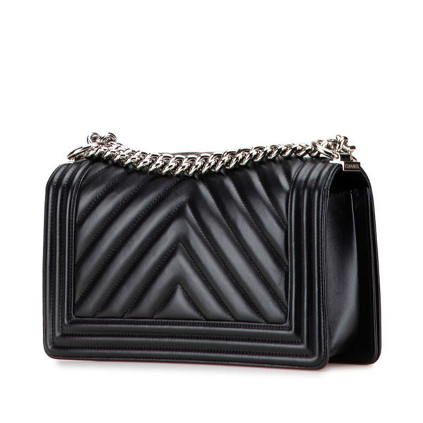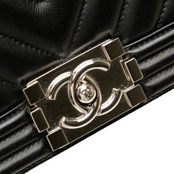 CHANEL Boy Chanel Chevron V-Stitch Chain Shoulder Bag in Black Lambskin for Women