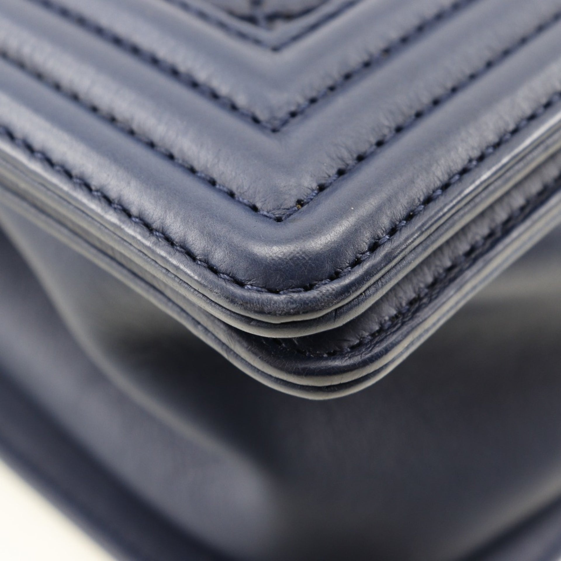 CHANEL Boy Chanel Shoulder Bag Chain Matelasse Lambskin Navy Flap Women\'s
