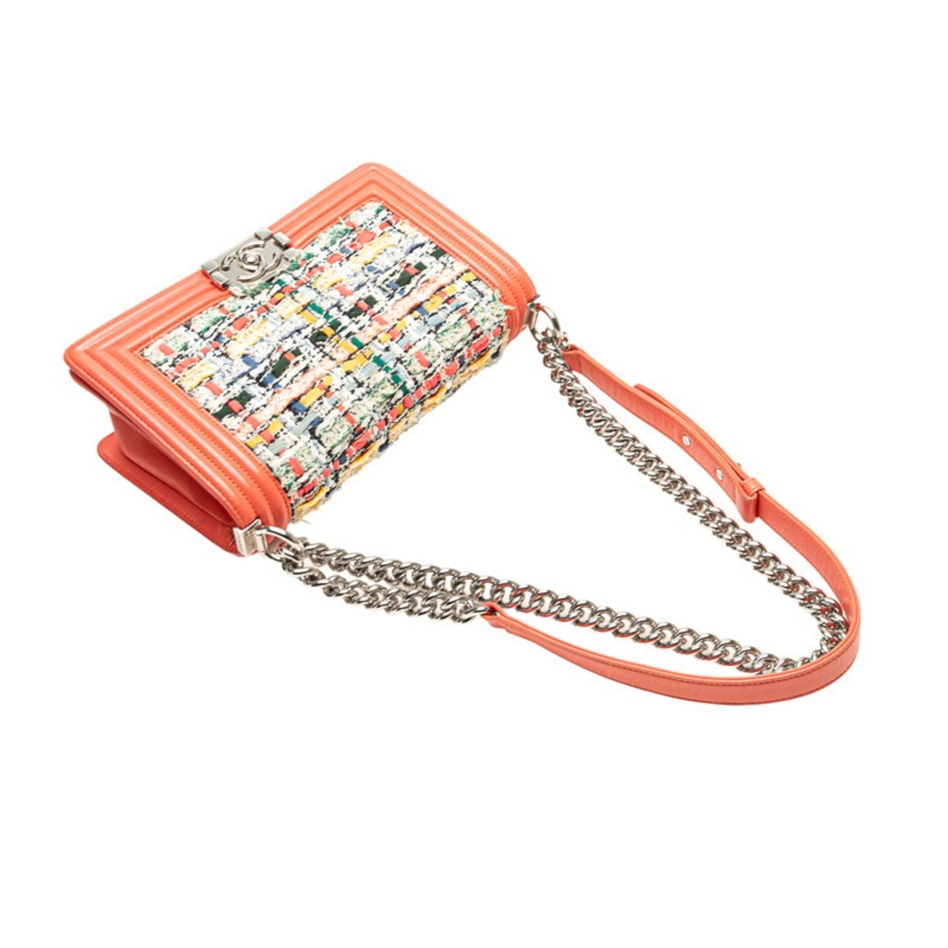 CHANEL Boy Chanel Shoulder Bag in Orange and Multicolored Tweed Leather for Women