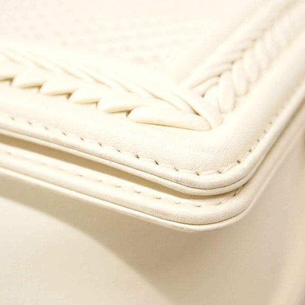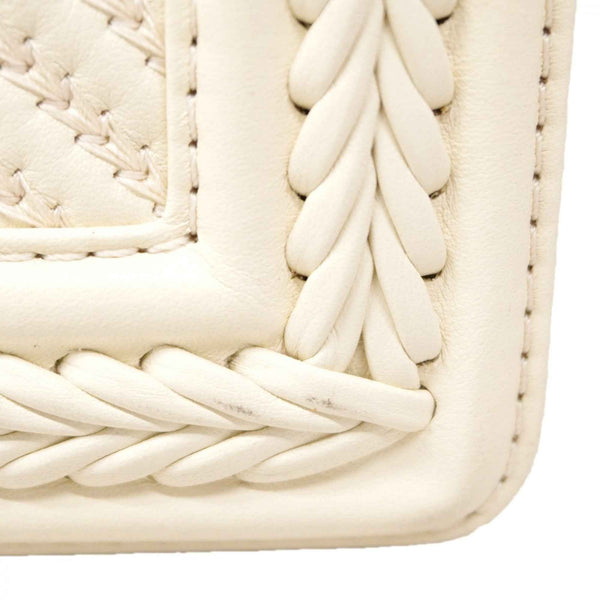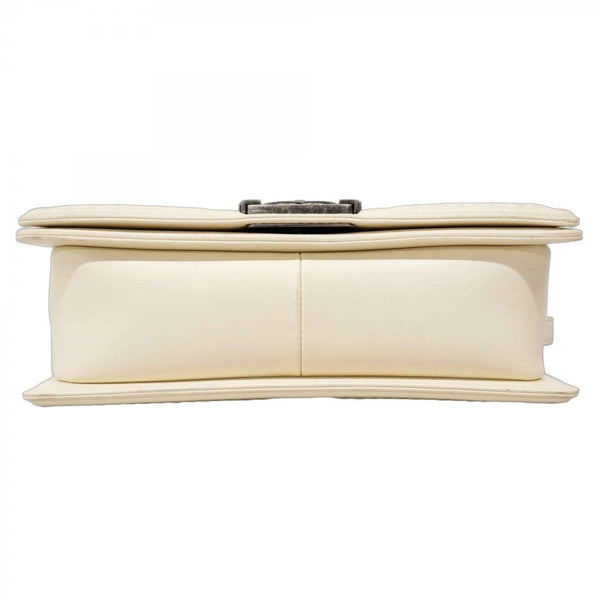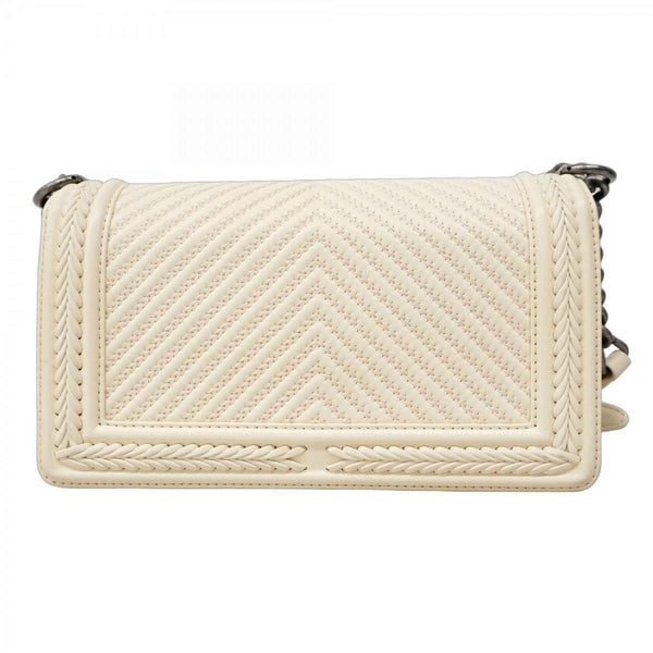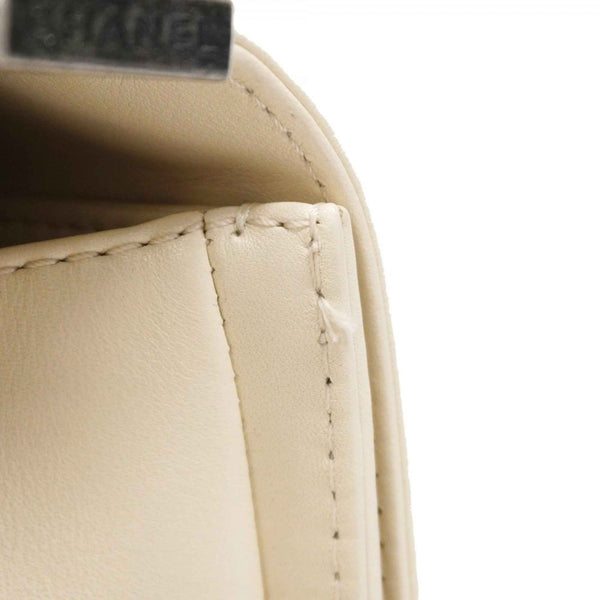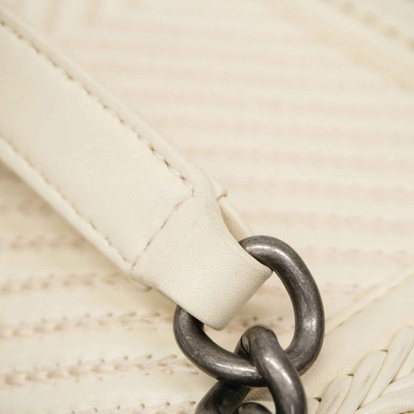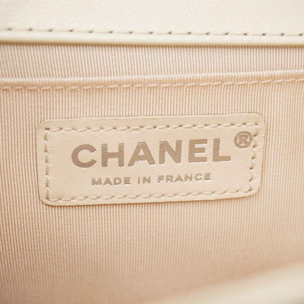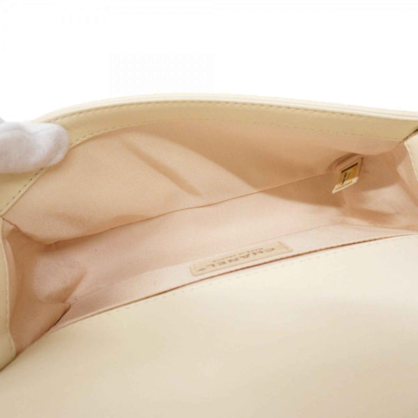Chanel Boy Shoulder Bag, V-Stitch Chain Lambskin, Ivory, Women\'s