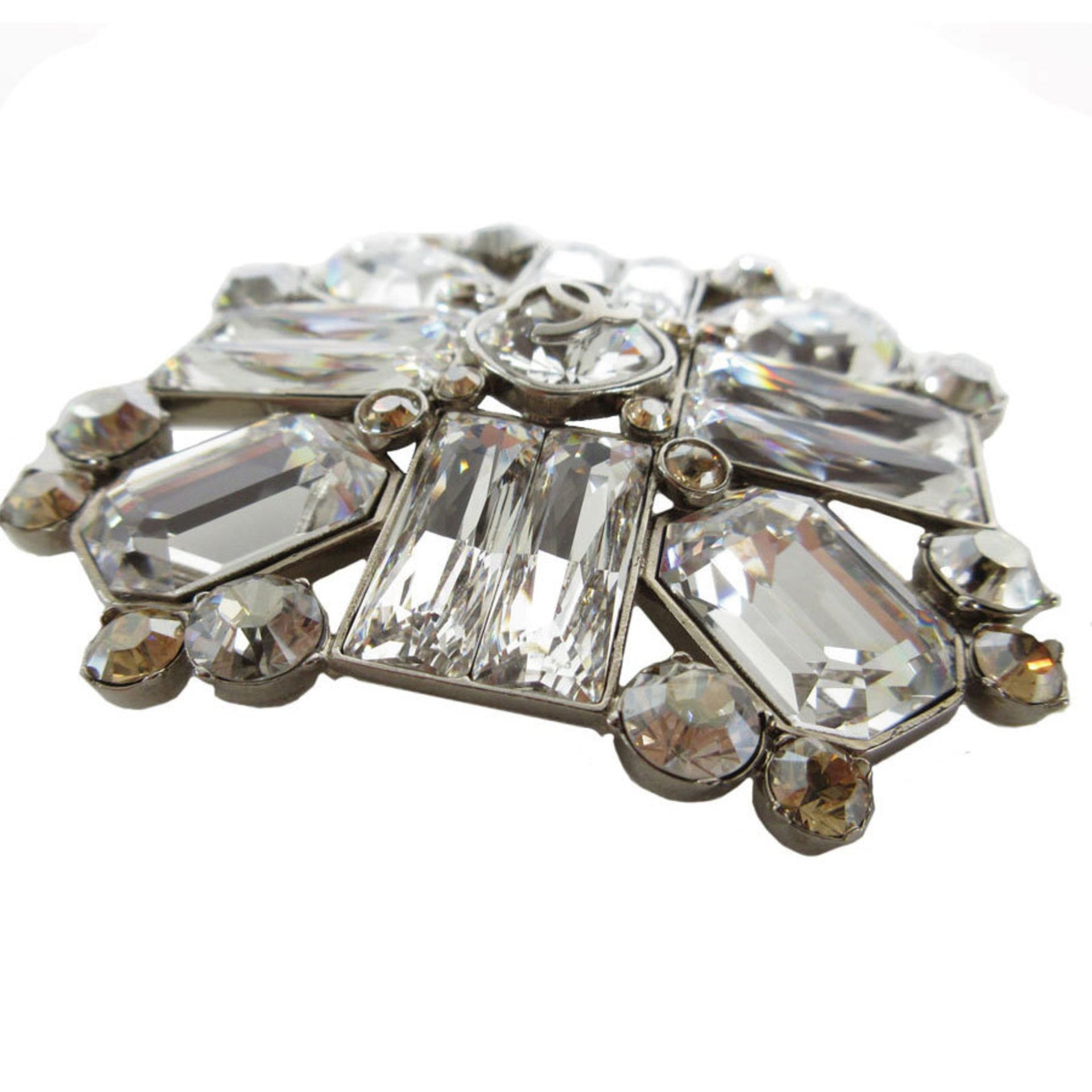 CHANEL Brooch Coco Mark Metal Rhinestone Silver Light Orange Women\'s s0624k