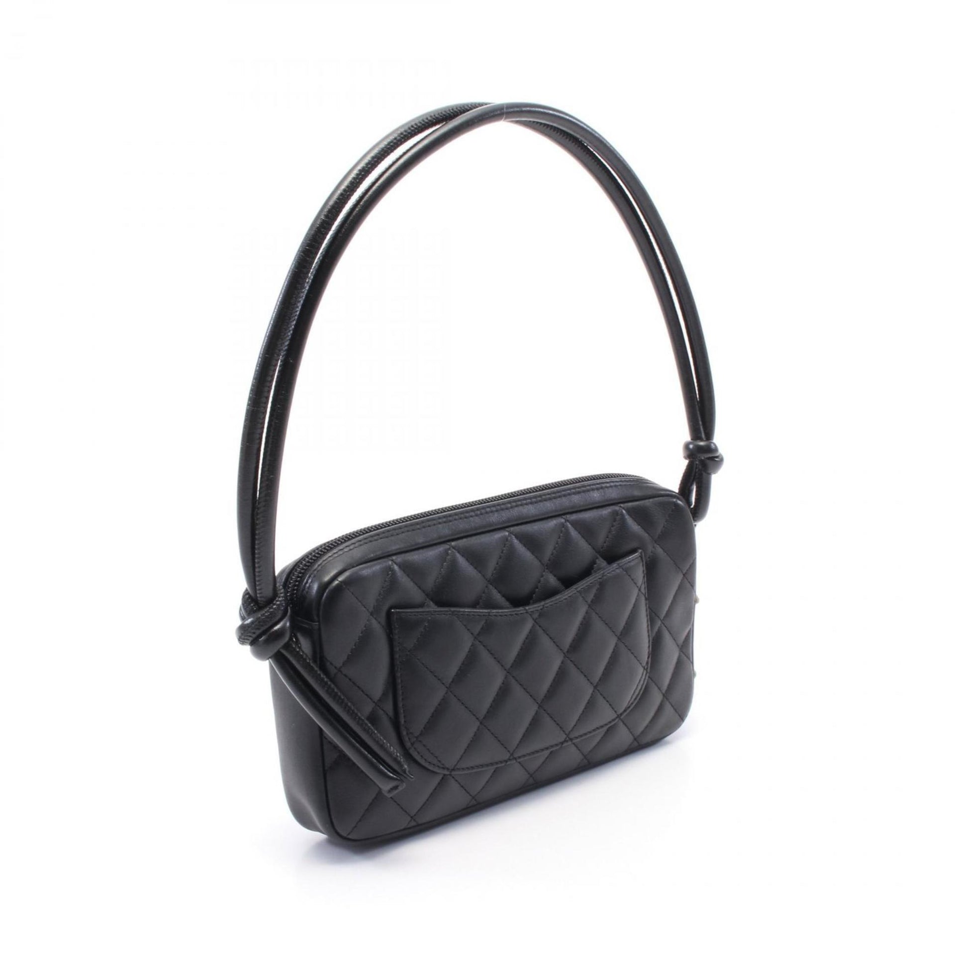 CHANEL Cambon Line Handbag Leather Women\'s Black White A25175