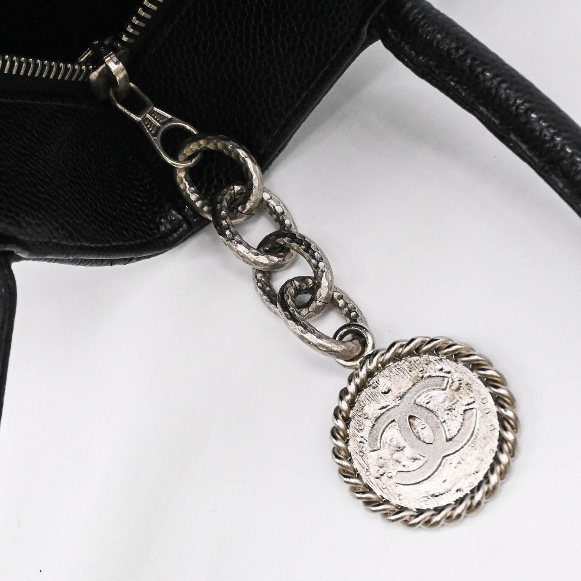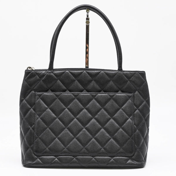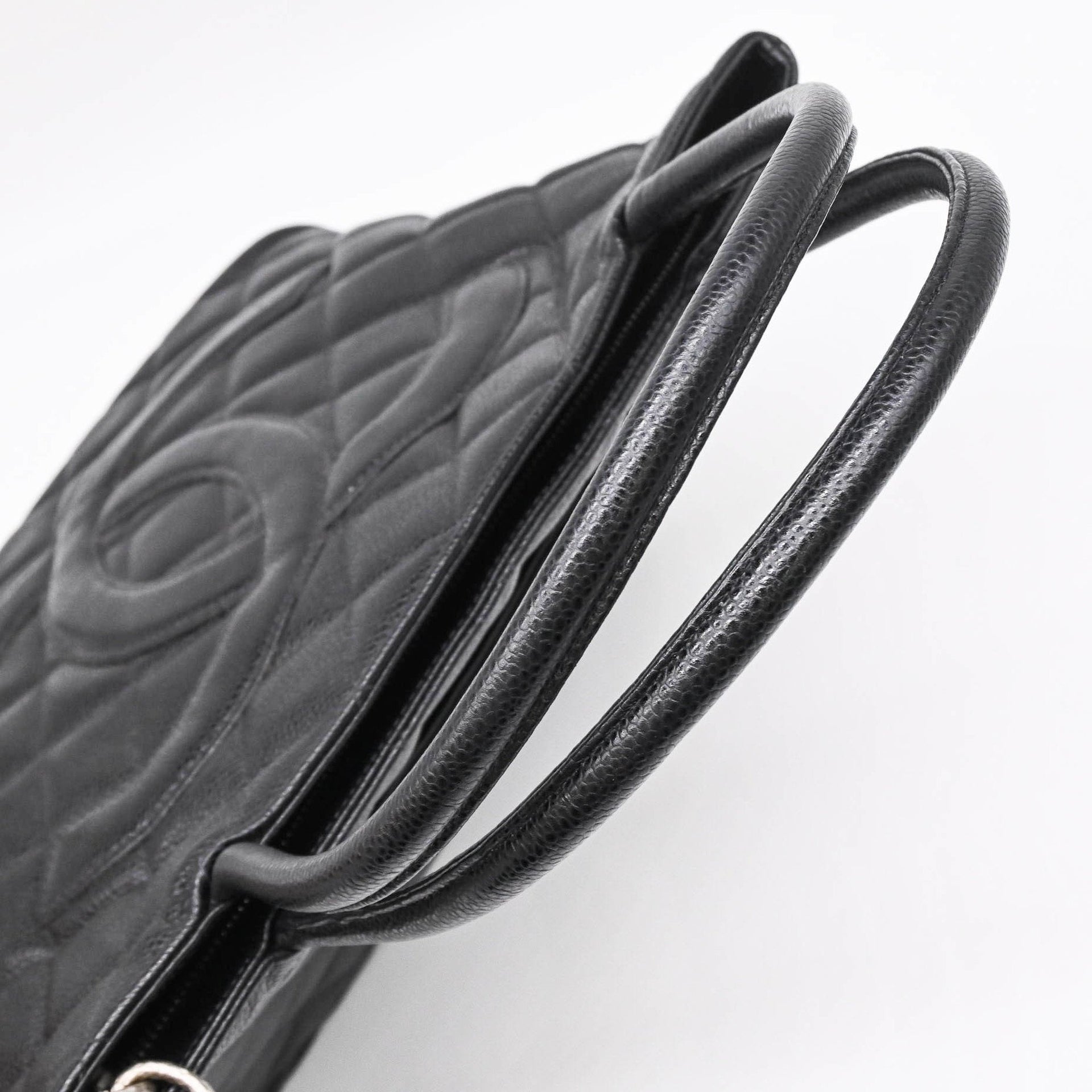 CHANEL Caviar Skin Reproduction Tote Bag Handbag Black with Chanel Card and Coco Mark Seal