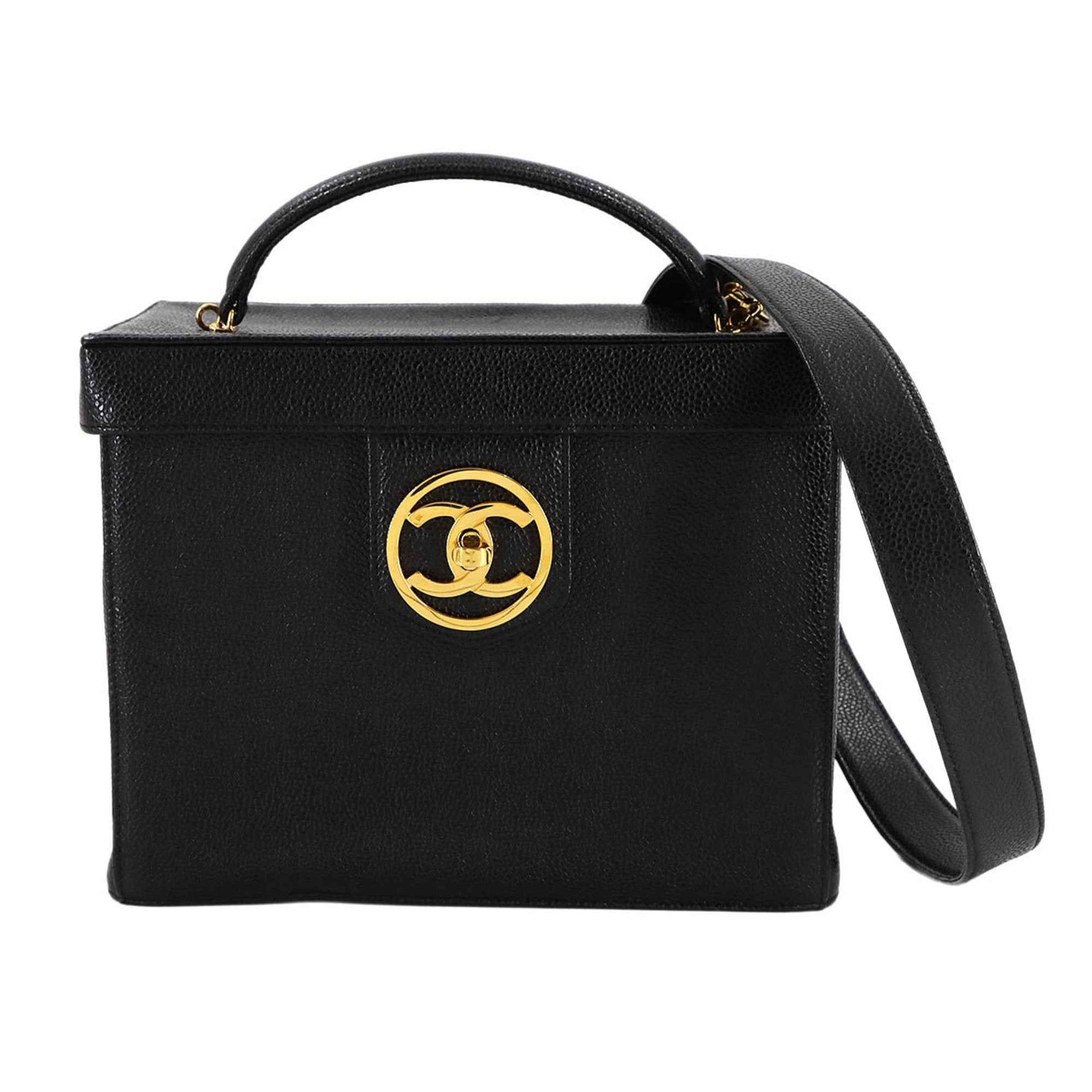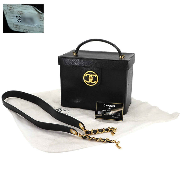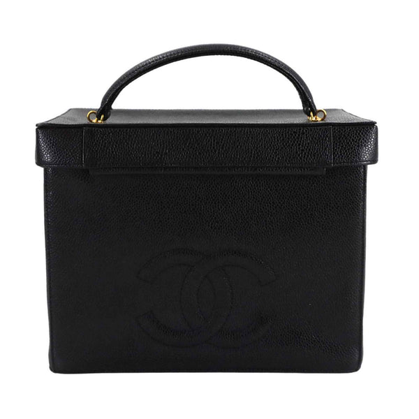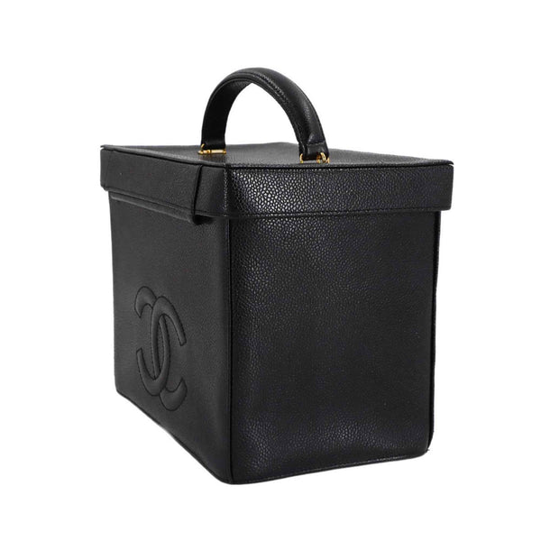CHANEL Caviar Skin Vanity 2-Way Hand/Shoulder Bag in Black Leather (A01999)
