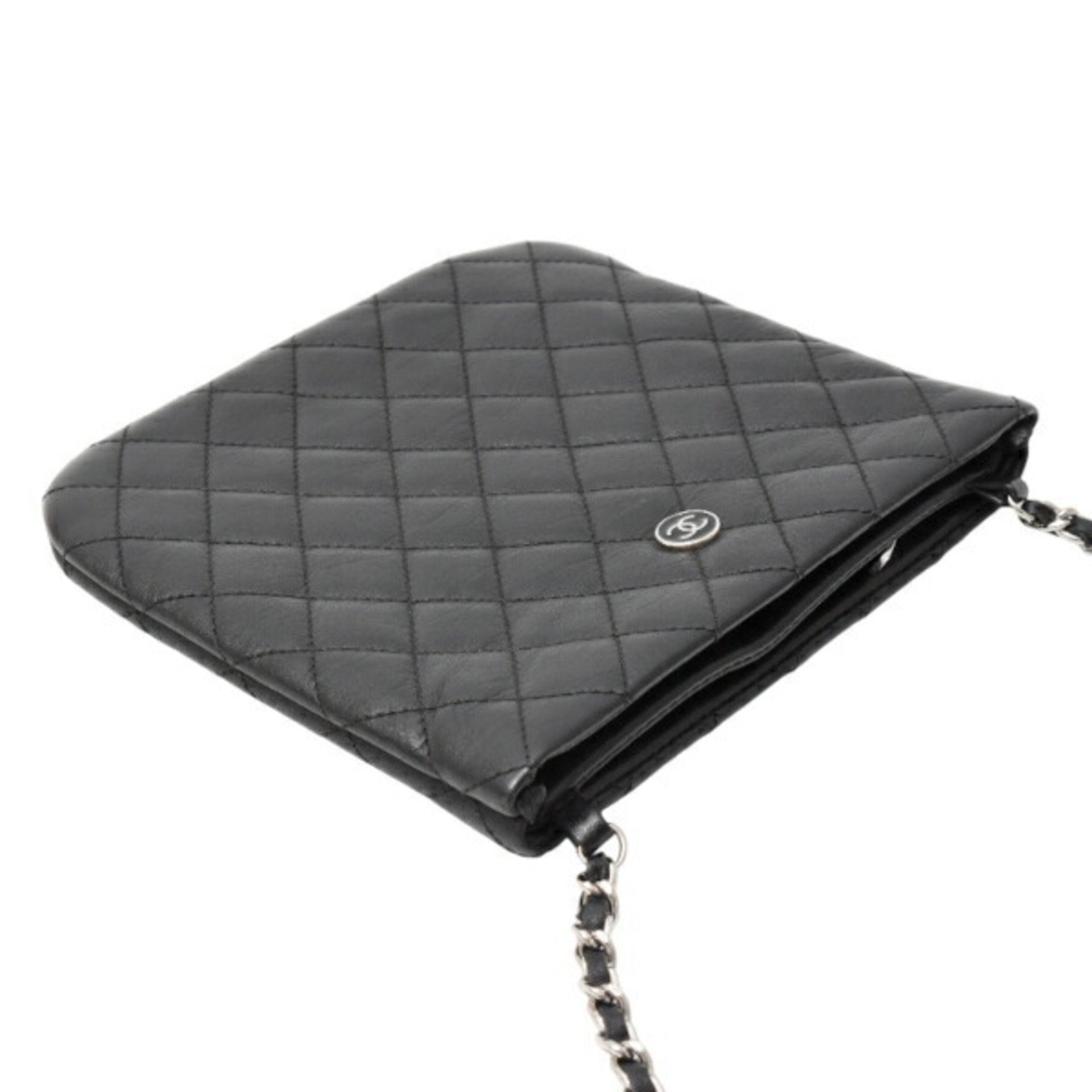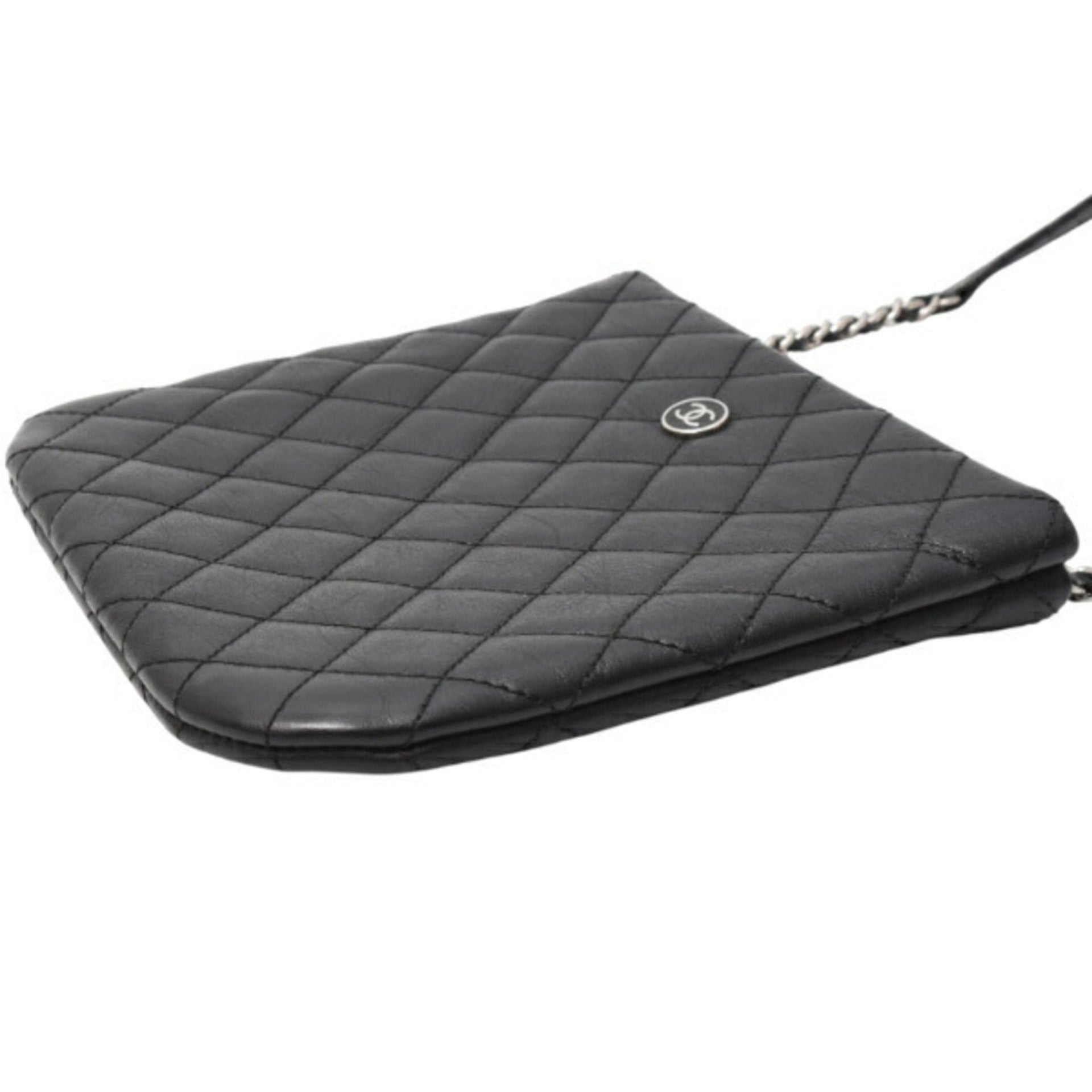 CHANEL Chain Shoulder Bag Matelasse Uniform Coco Button Calf Leather Black