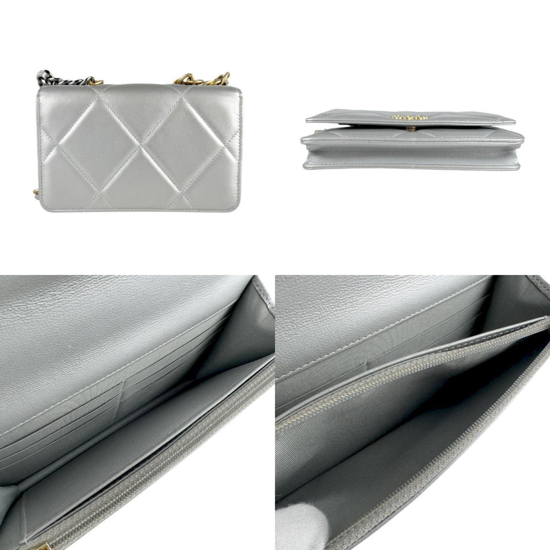 CHANEL Chain Wallet, Long Leather Silver, Women\'s, Z7551