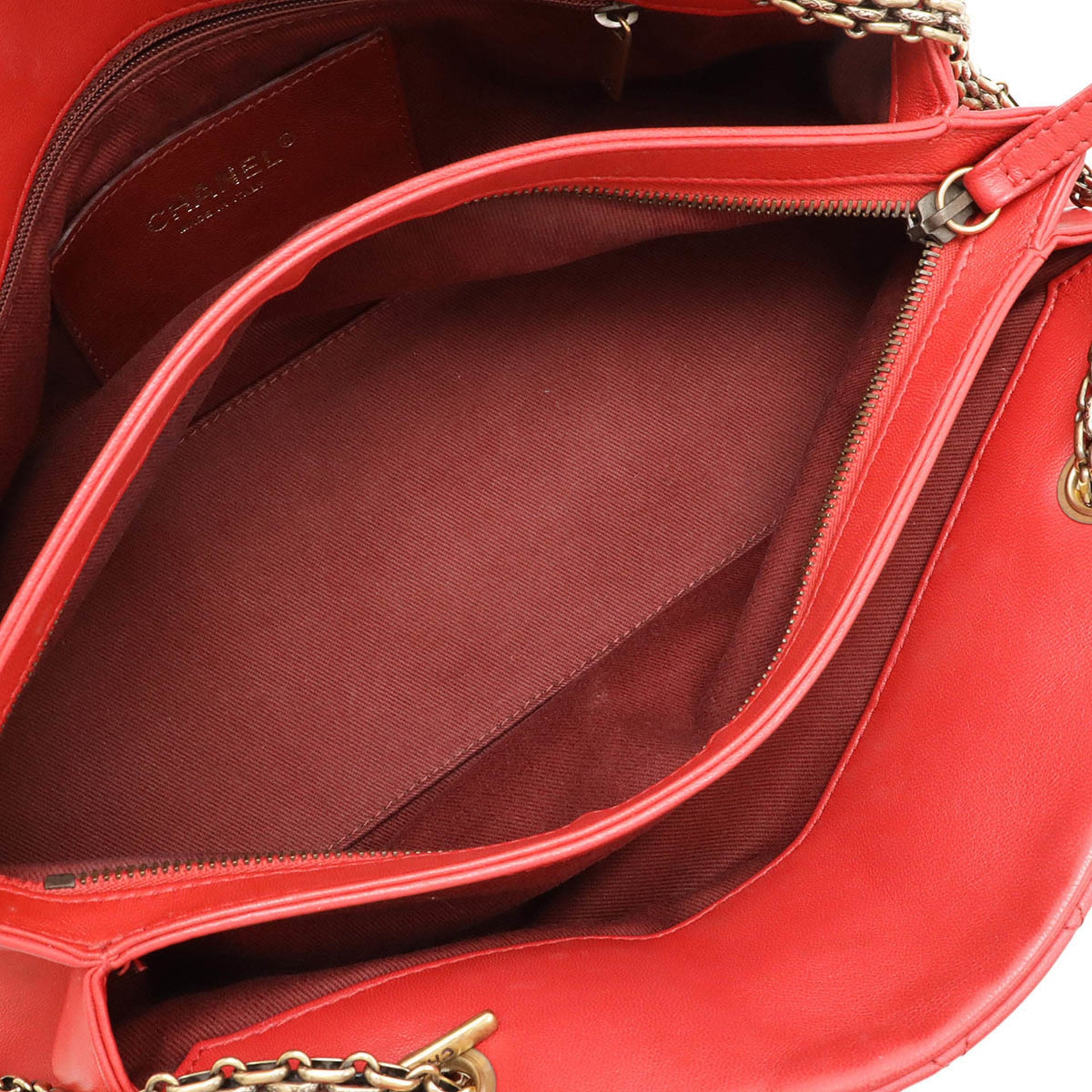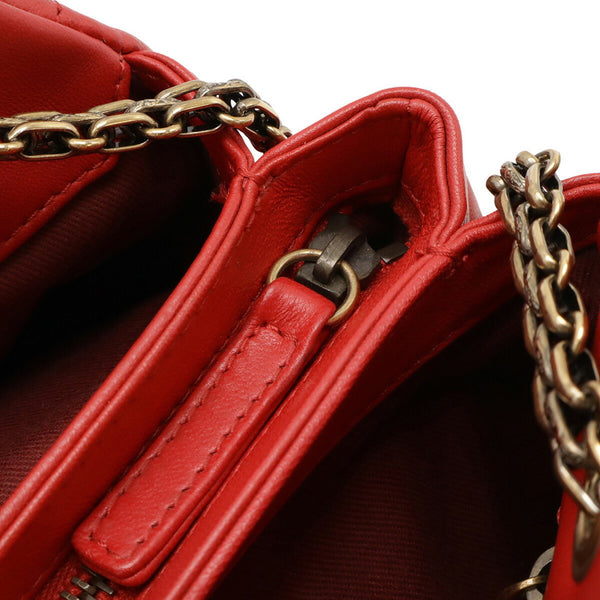 CHANEL Chanel Mademoiselle Matelasse Bowling Bag Shoulder Chain Lambskin Red