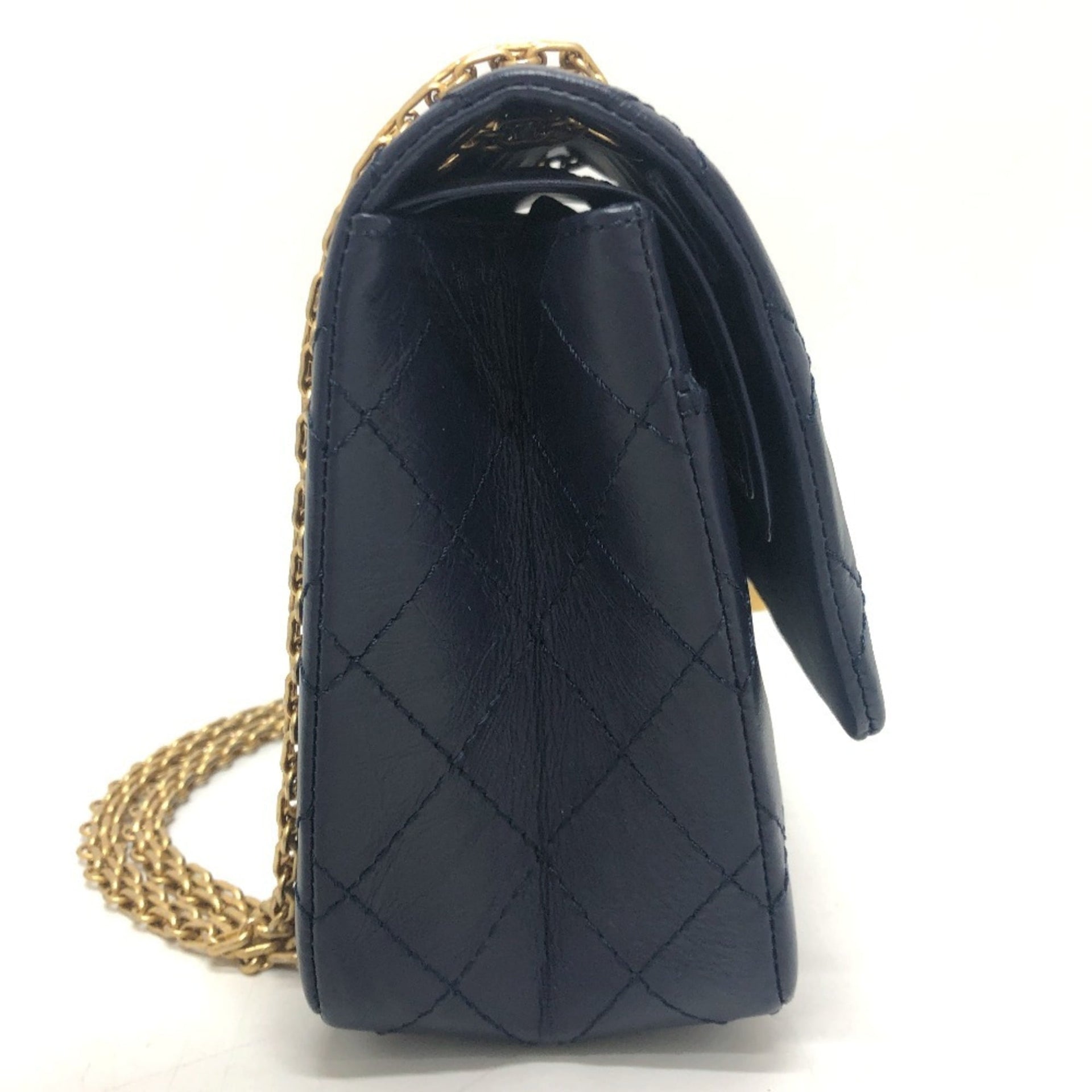CHANEL Chanel Matelasse Double Flap 2.55 Bag Shoulder Crossbody Leather Women\'s Navy