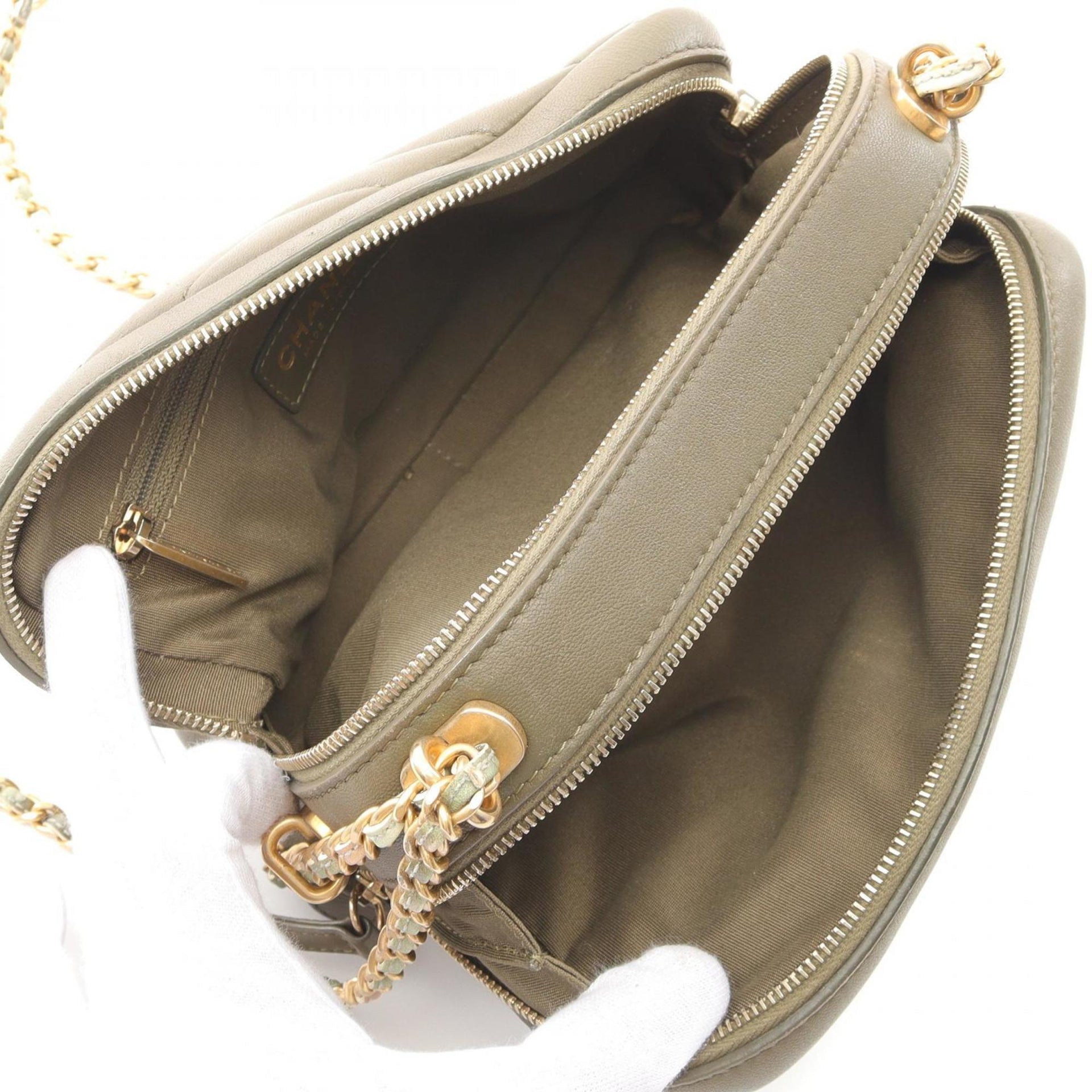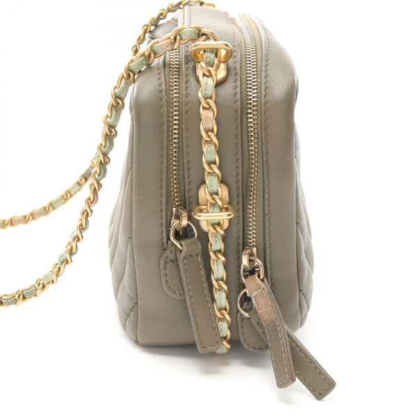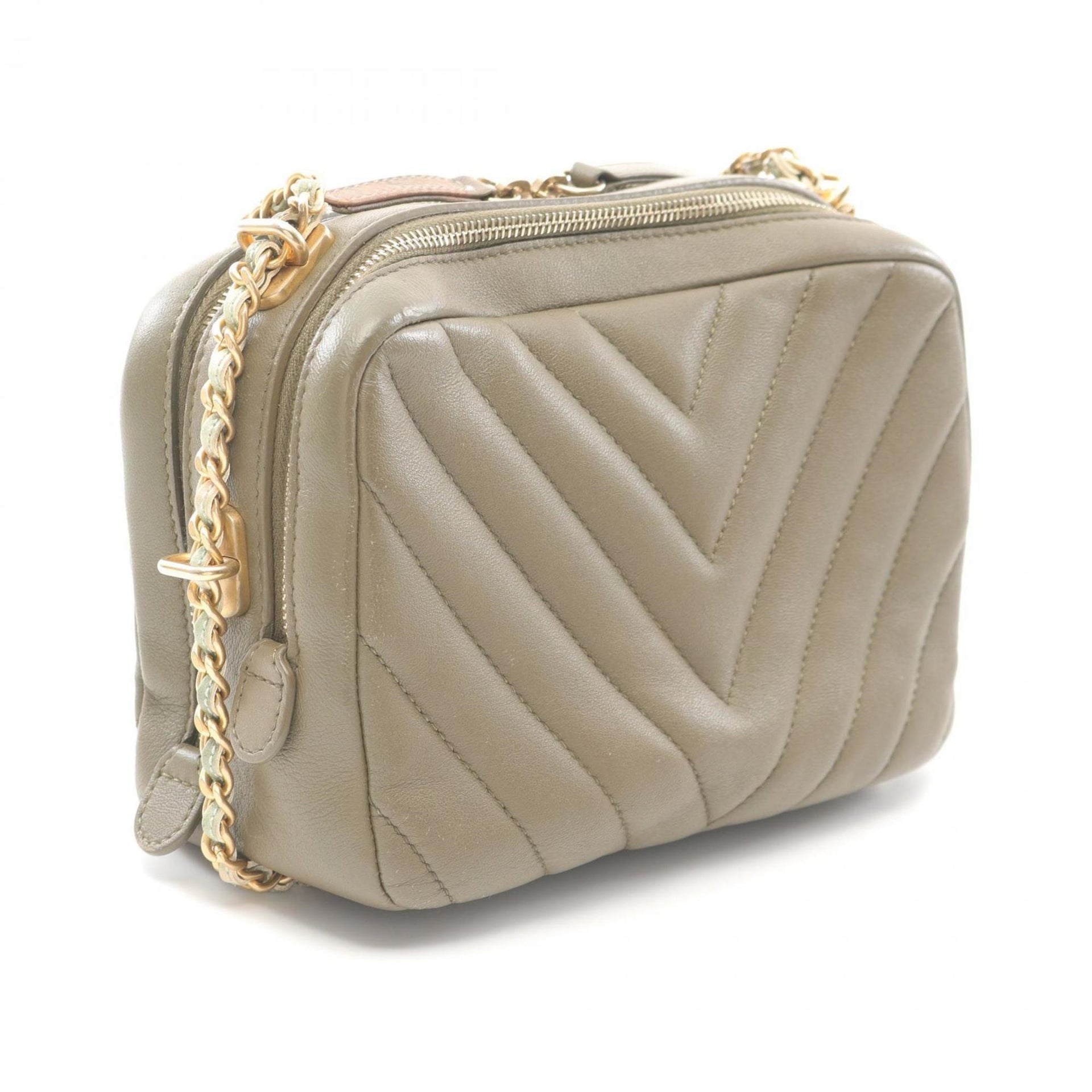 CHANEL Chevron V-stitch shoulder bag, lambskin, women\'s, khaki, 25301988