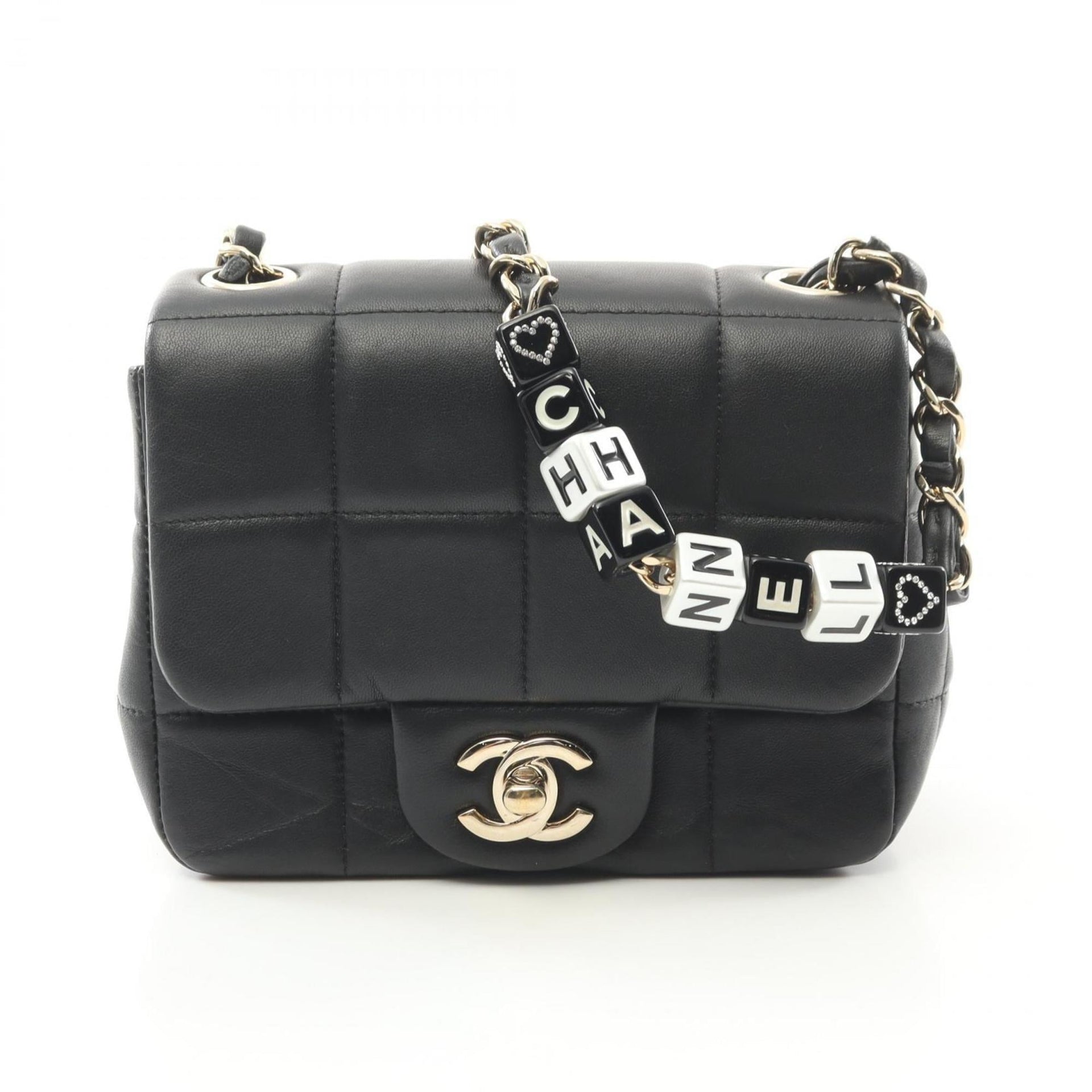 CHANEL Chocolate Bar Mini Flap Shoulder Bag Lambskin (Sheepskin) Women\'s Black AS3744
