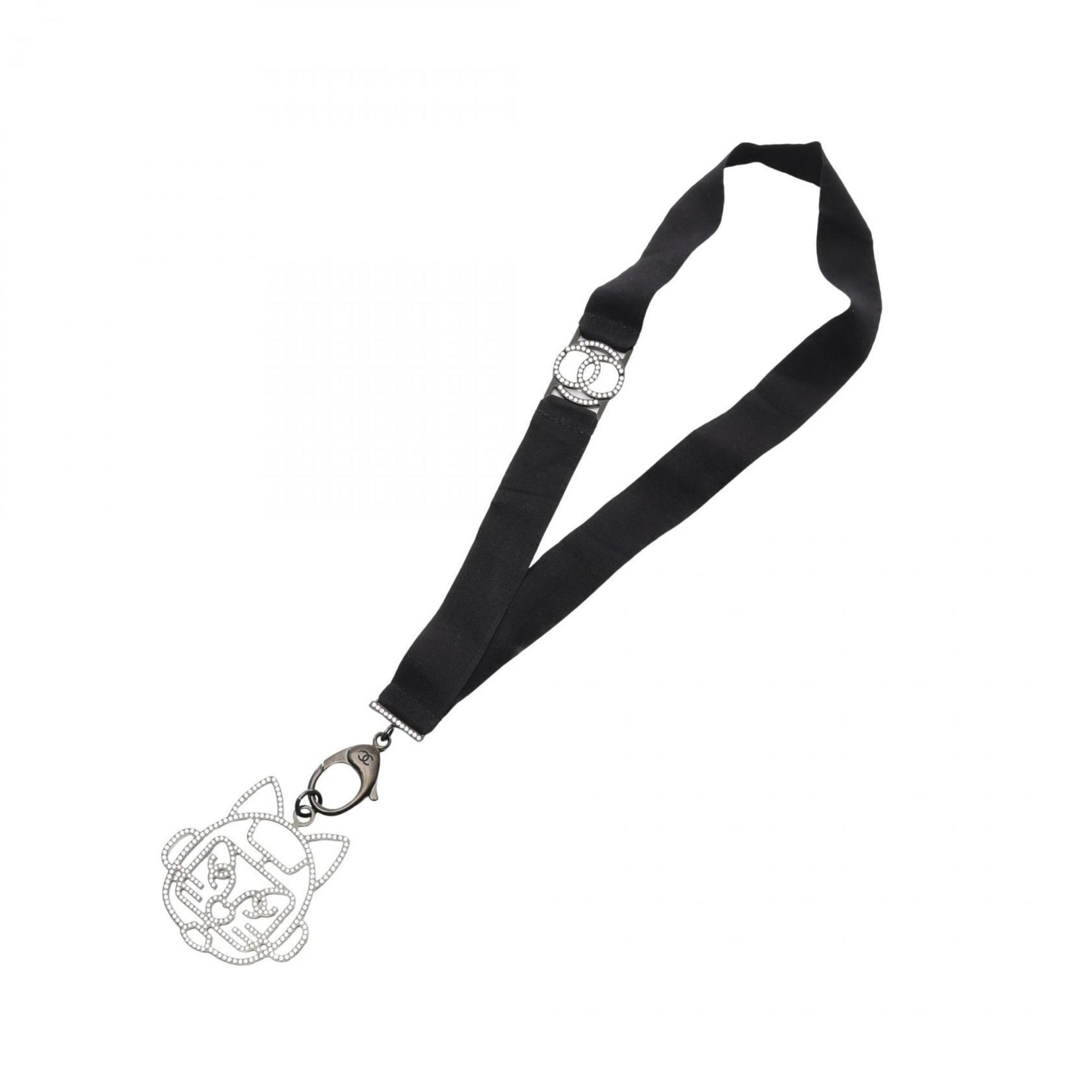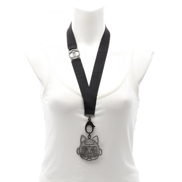Chanel Coco Mark Cat Robot Necklace, Stainless Steel with Rhinestones, Women\'s, Black and Clear
