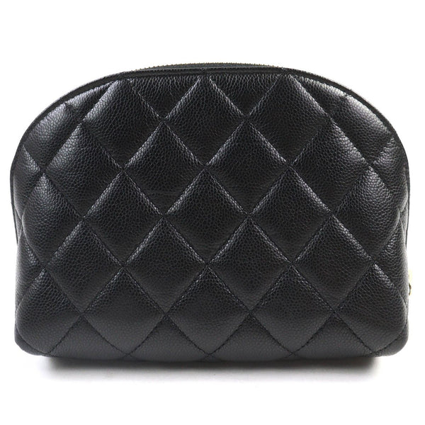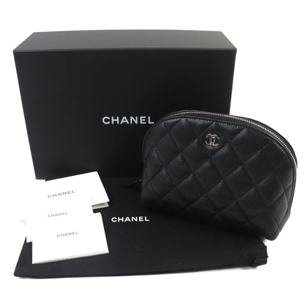 CHANEL Coco Mark Caviar Leather Matelasse Pouch with Random Serial Number, Black Gold Hardware, Box and Dust Bag, Made in Italy, Women\'s