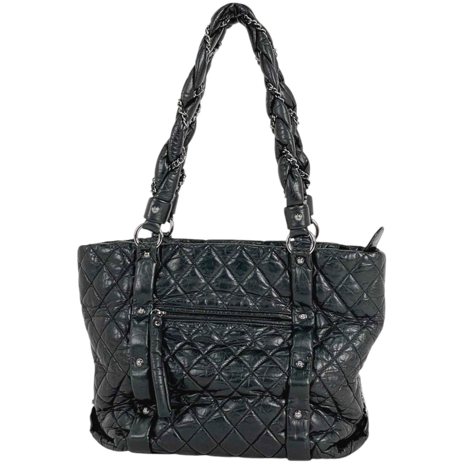 CHANEL Coco Mark Chain Tote Bag Shoulder Leather Black Women\'s