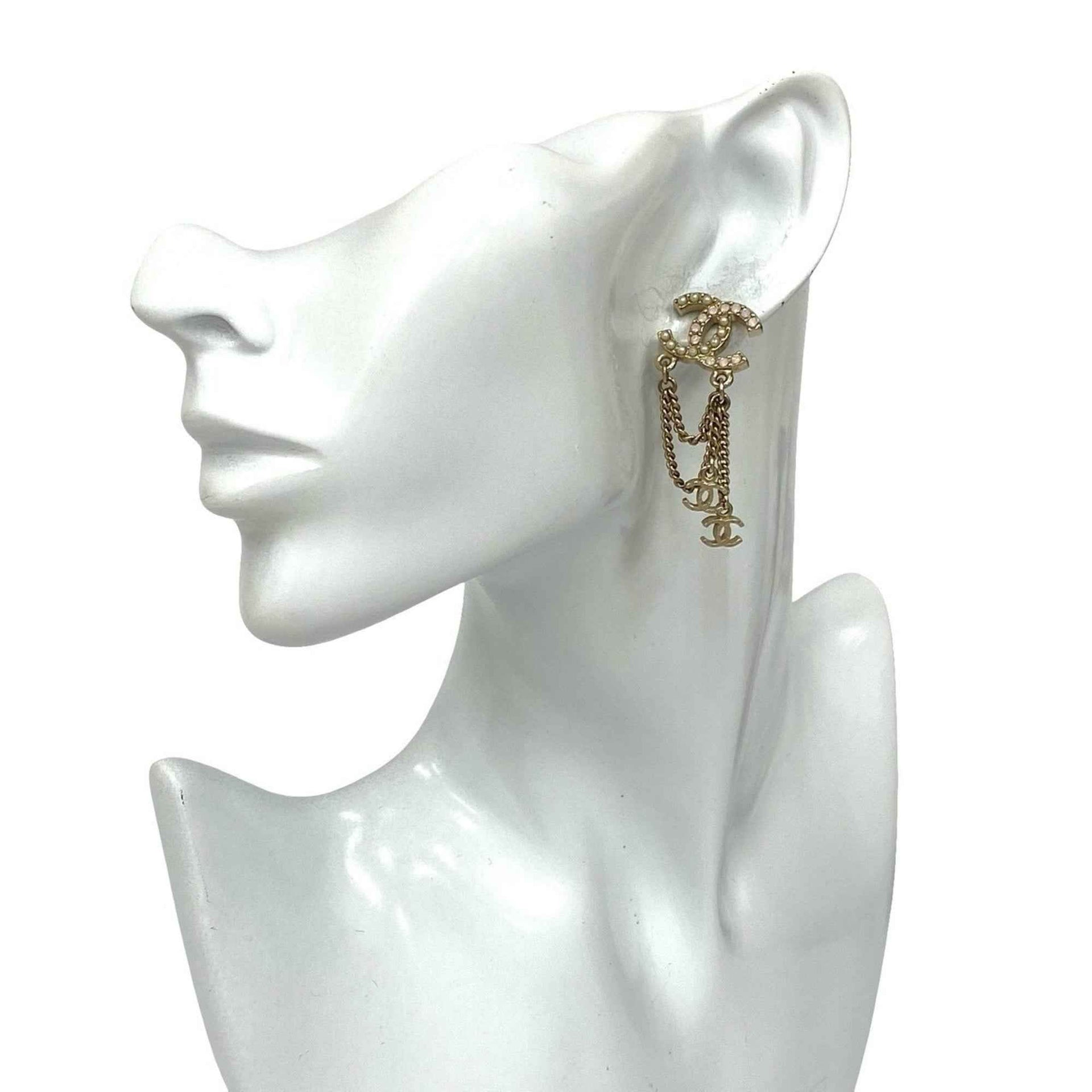 CHANEL Coco Mark GP Rhinestone and Faux Pearl Earrings, Gold Pink, 78999