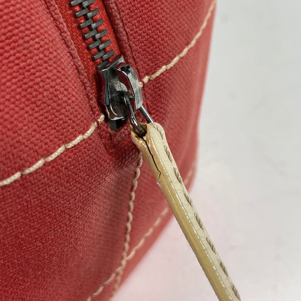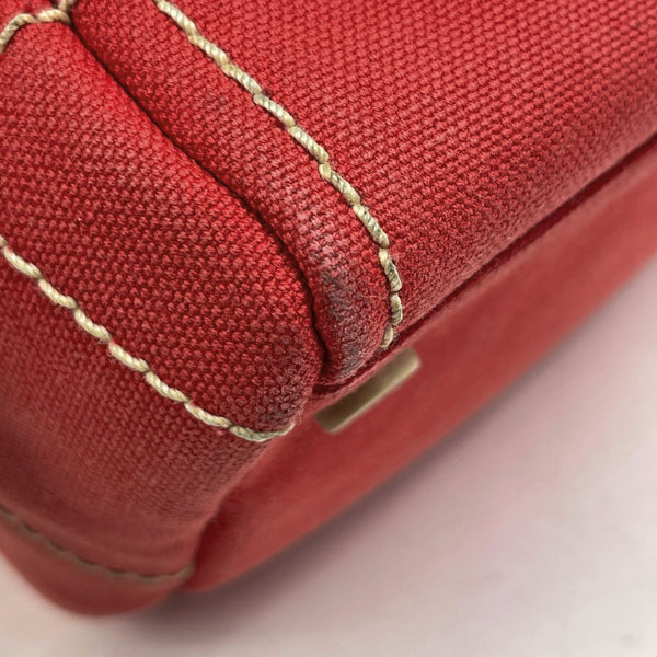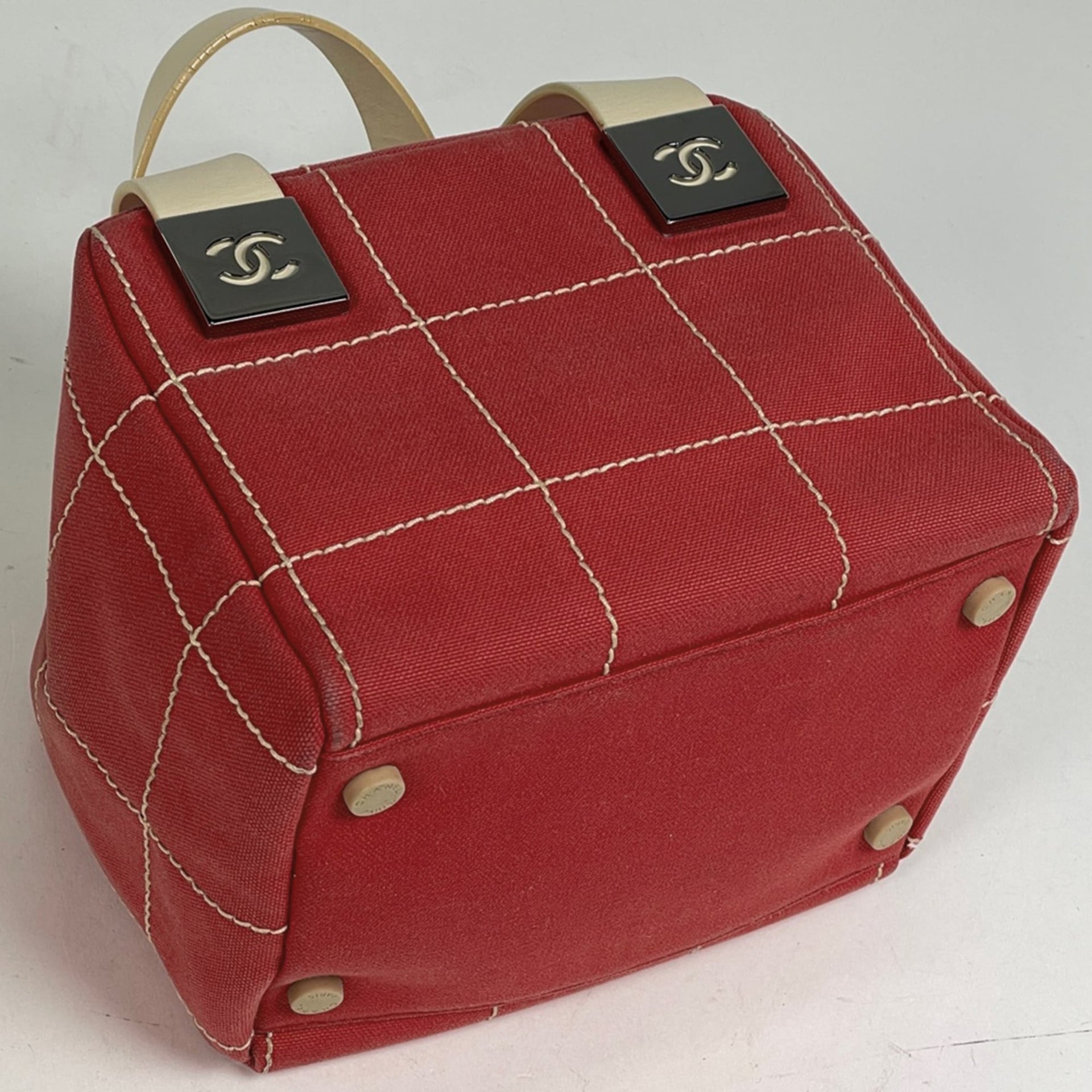 CHANEL Coco Mark Handbag, Chocolate Bar, Wild Stitch, Canvas, Red, Cream, Women\'s