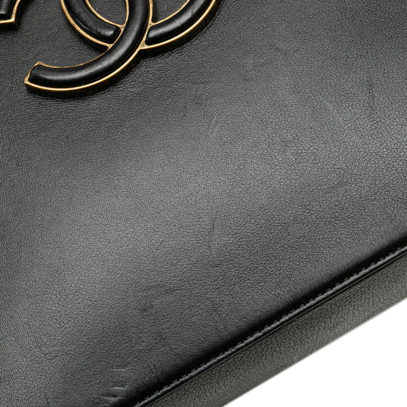 Chanel Coco Mark Handbag Shoulder Bag Black Leather Women\'s CHANEL