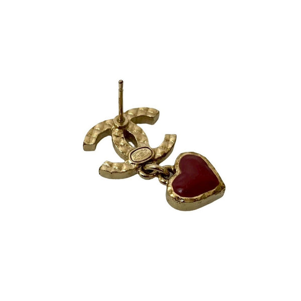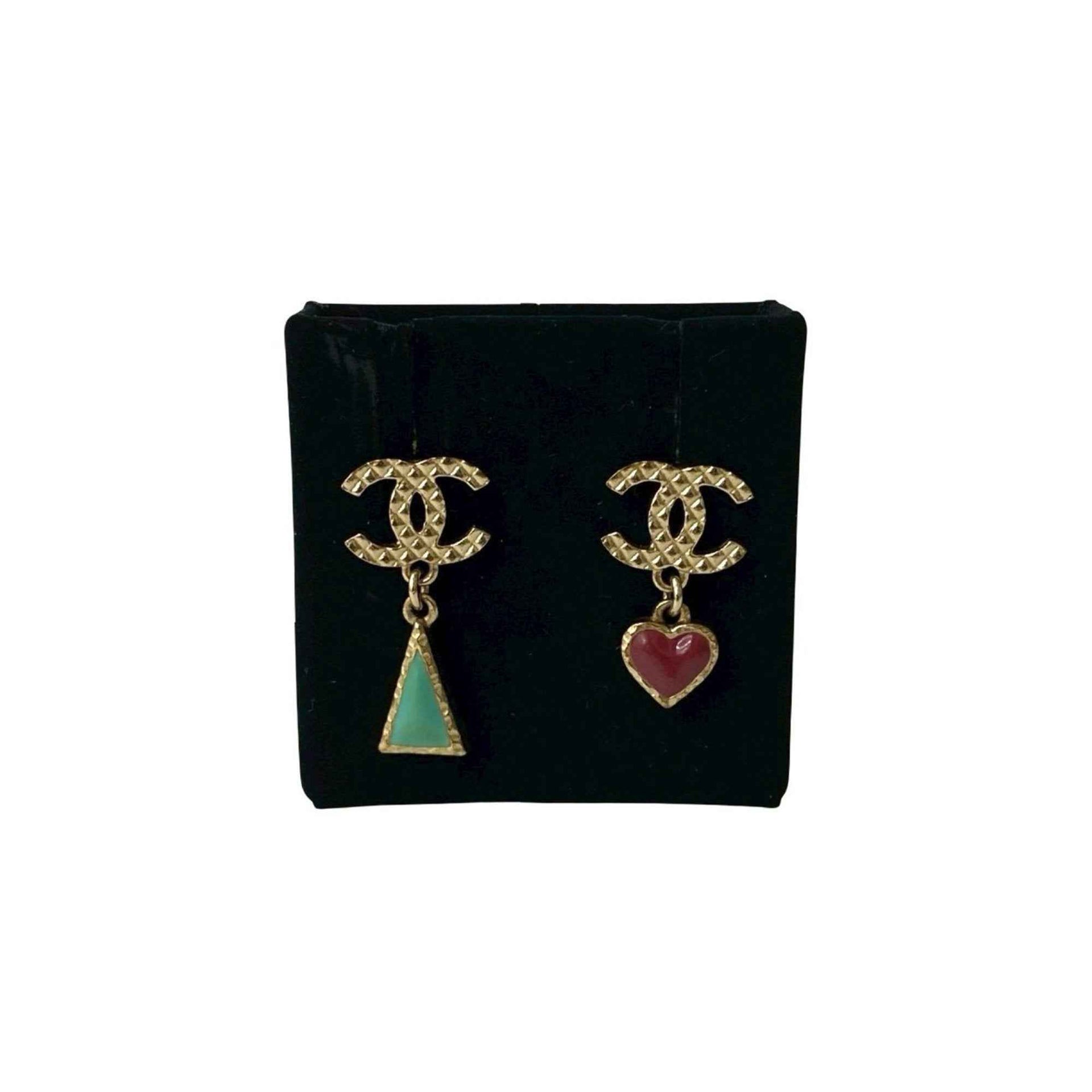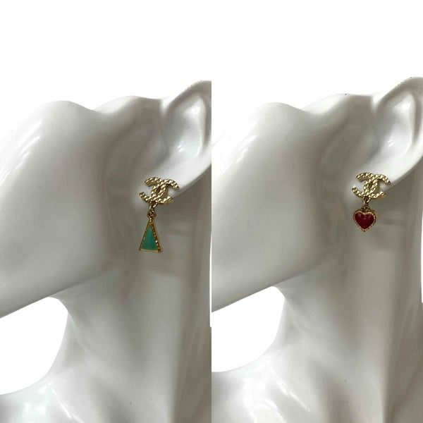 CHANEL Coco Mark Heart Triangle Earrings, Gold, Green, and Rose, 85407