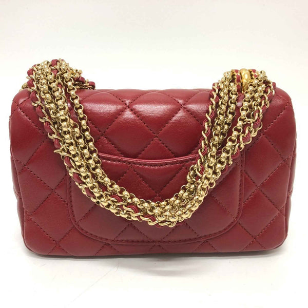 CHANEL Coco Mark Matelasse 3 Chain Shoulder Bag Lambskin Women\'s Red