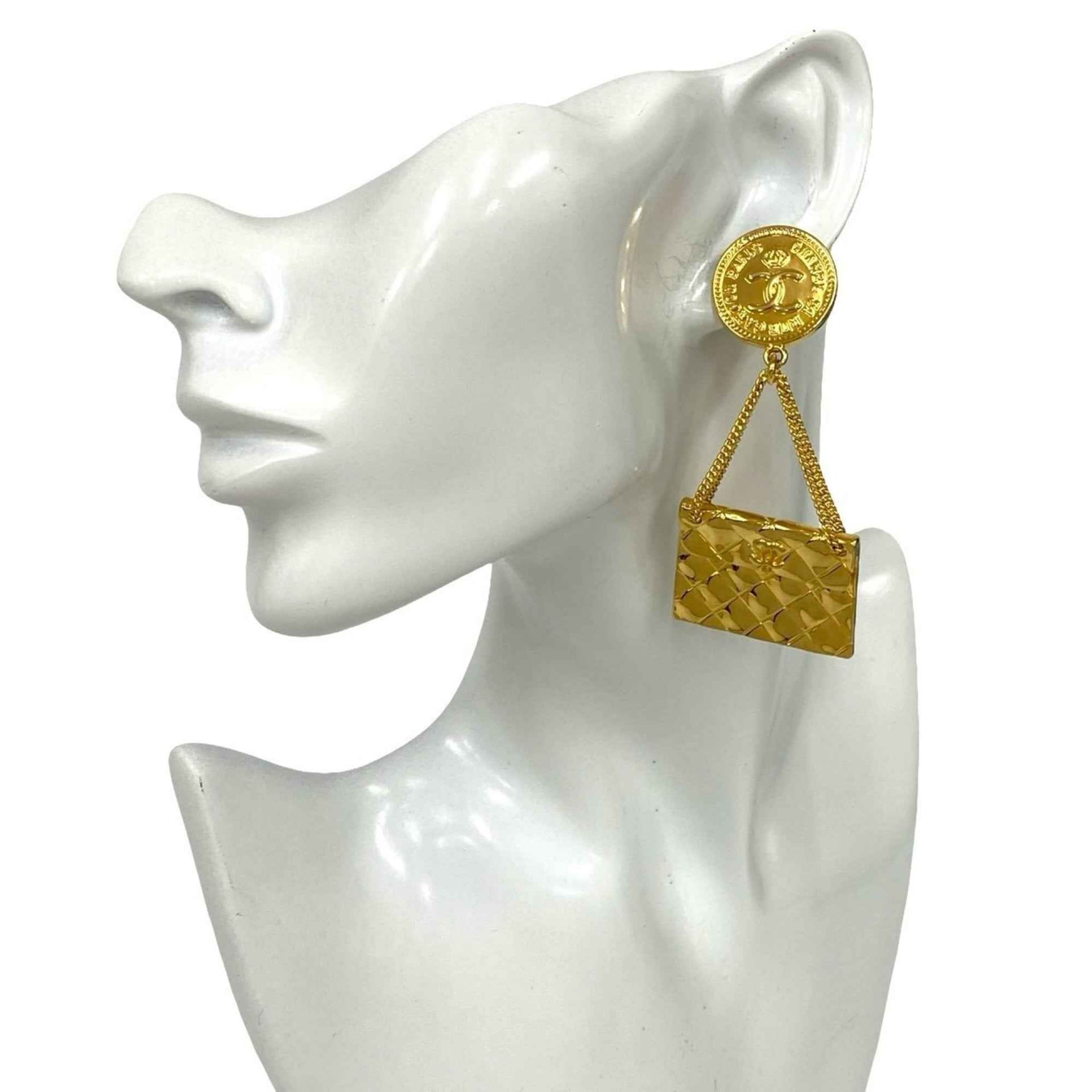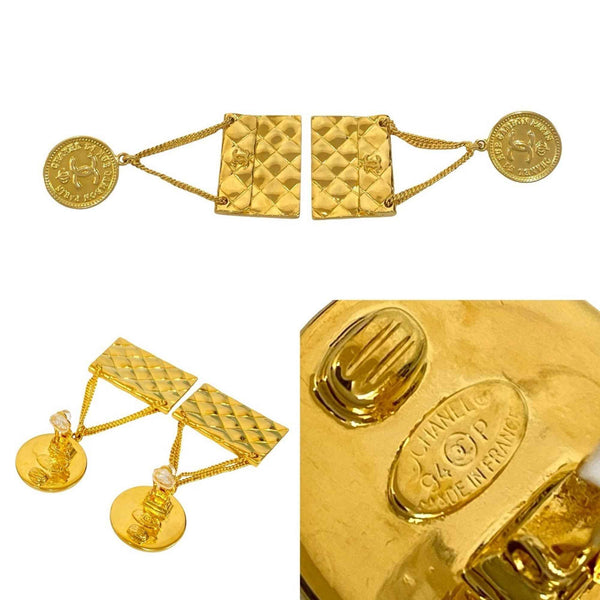 CHANEL Coco Mark Matelasse Bag GP Earrings Gold 133-6