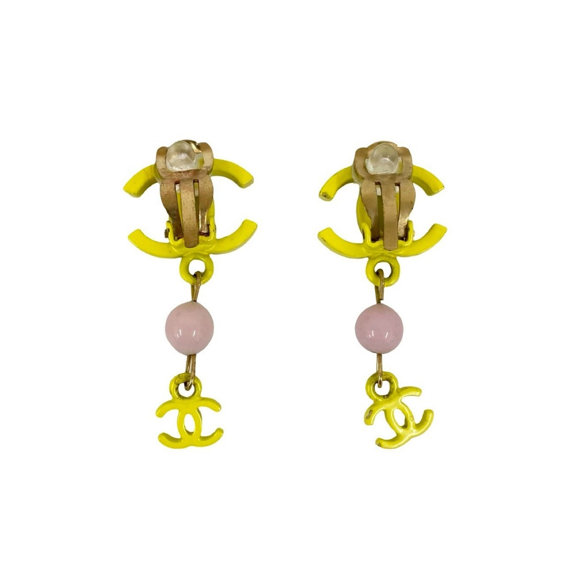 CHANEL Coco Mark Motif Plastic Earrings/Ear Cuffs, Gold/Yellow, 63050