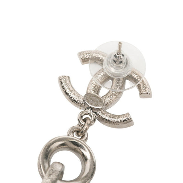 CHANEL Coco Mark Round Circle Swing Stud Earrings in Silver Metal with Rhinestones for Women