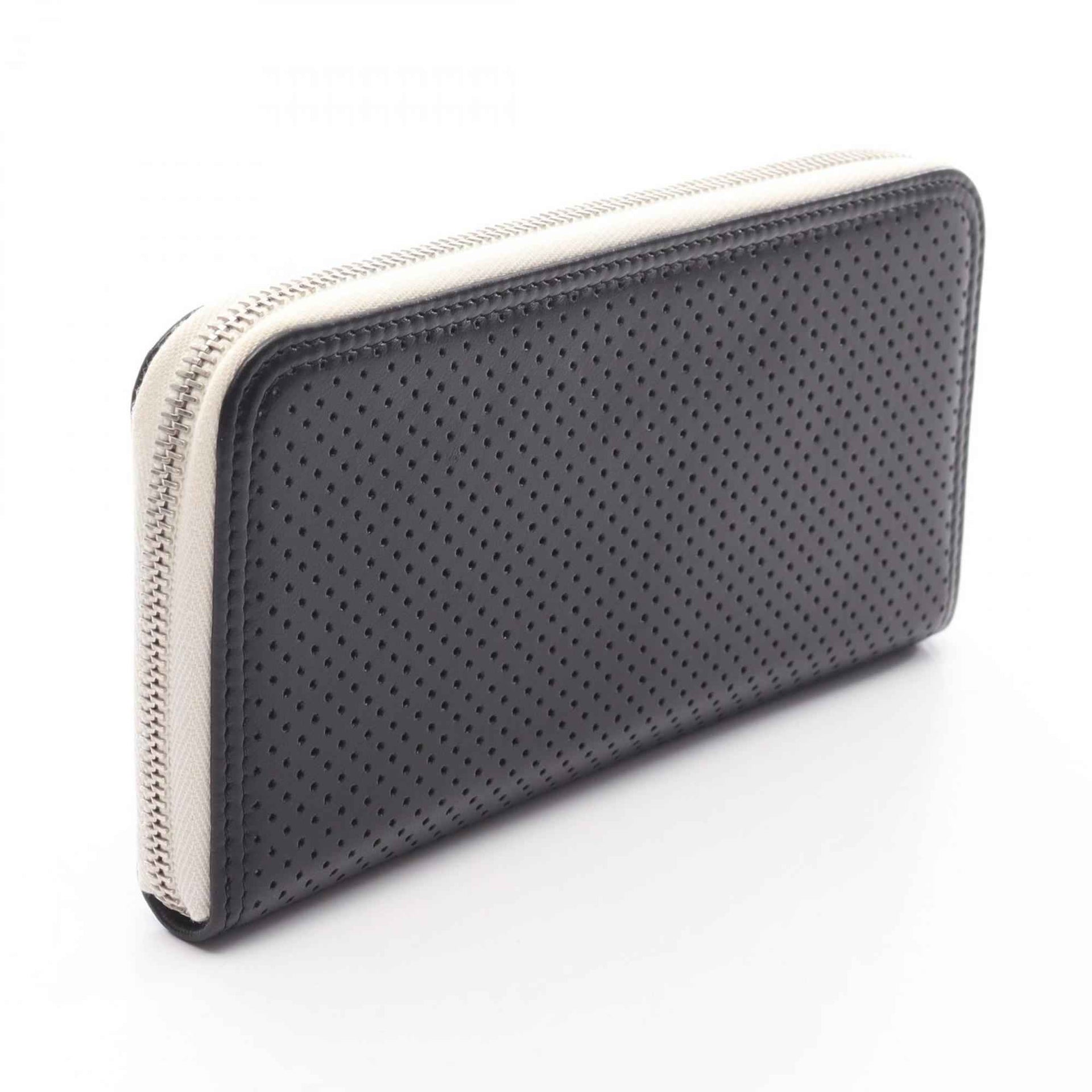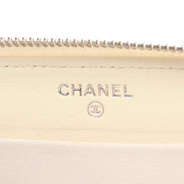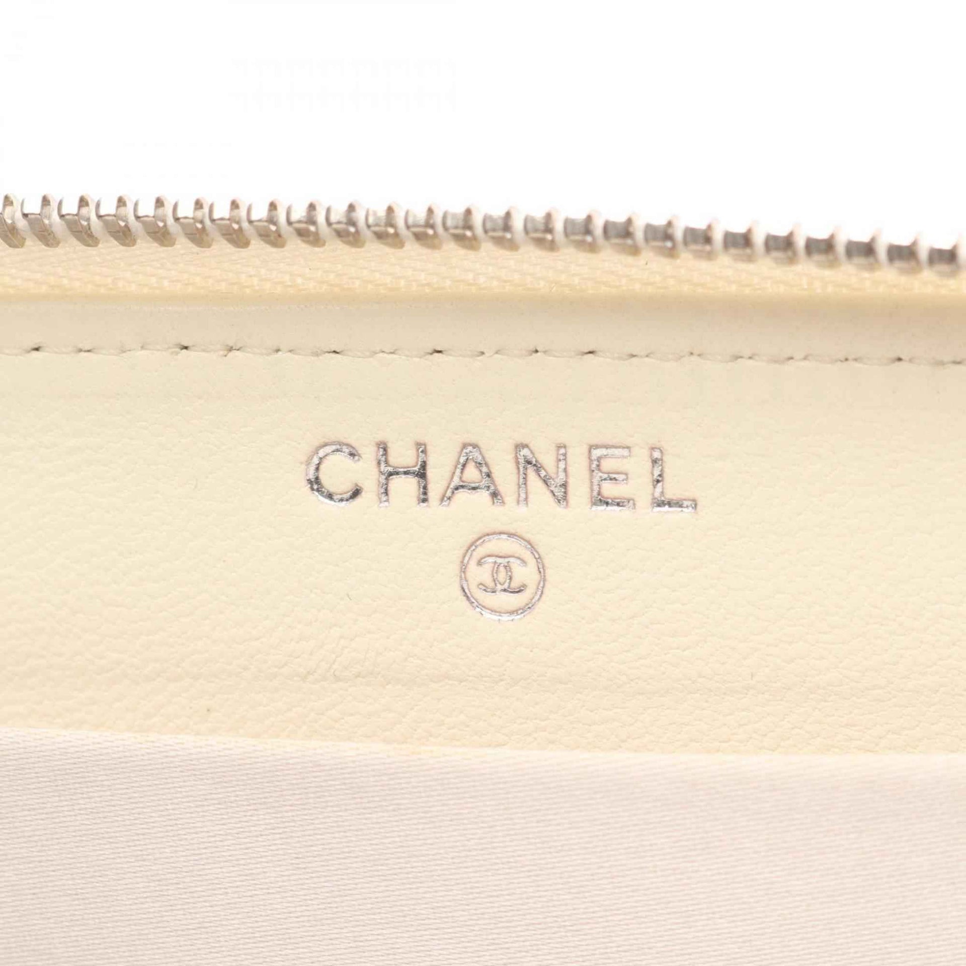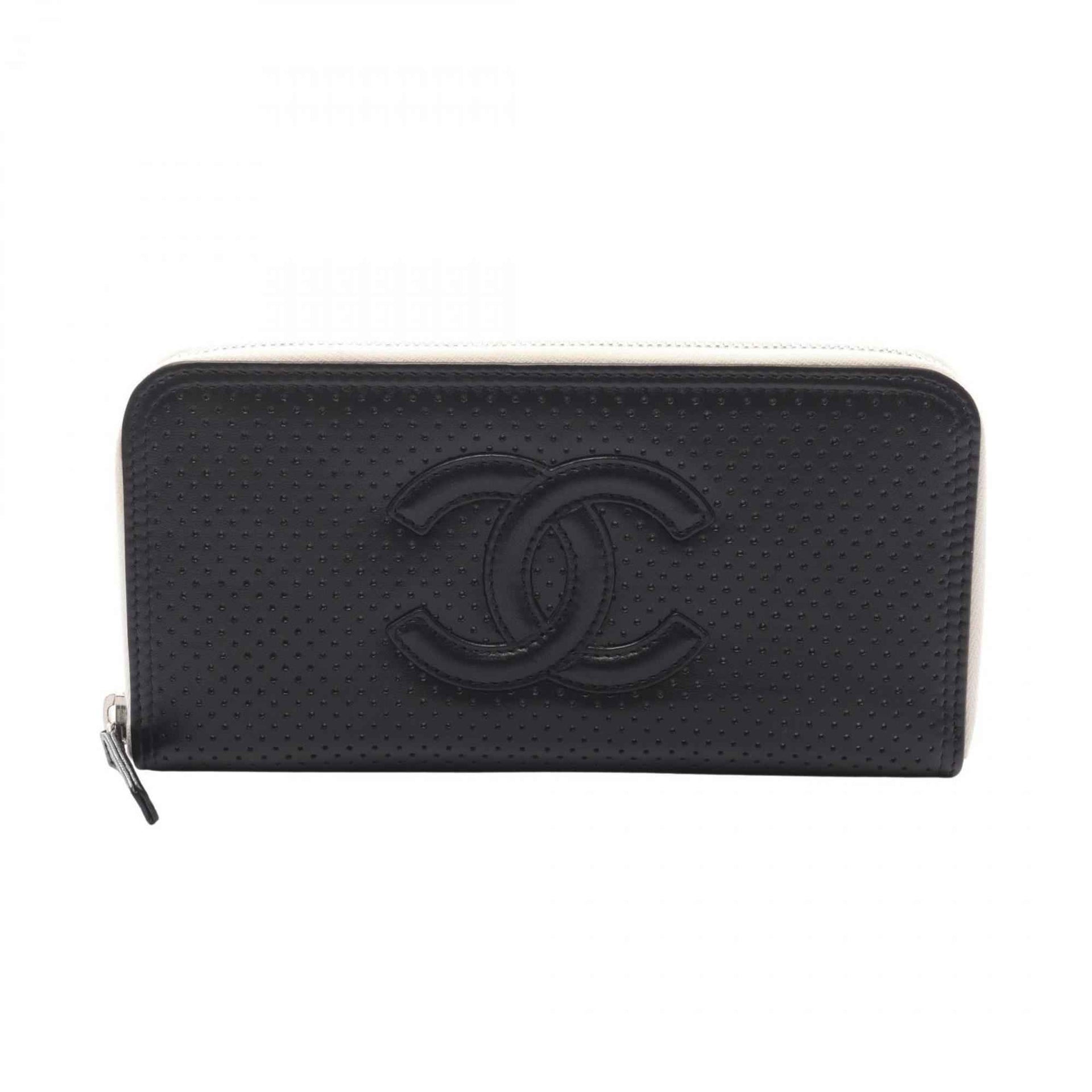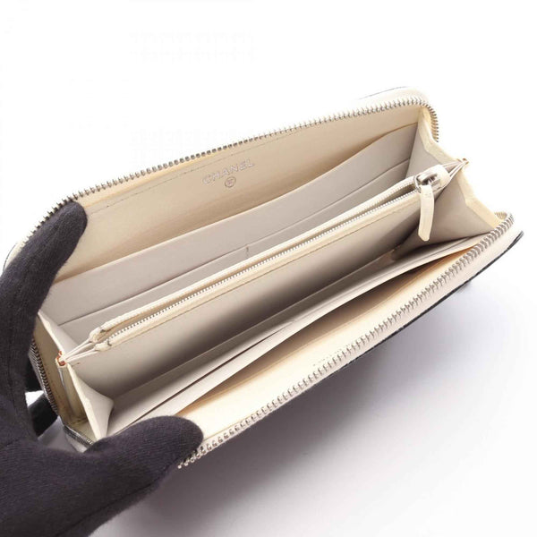 Chanel Coco Mark Round Long Wallet, Leather, Women\'s, Black and White