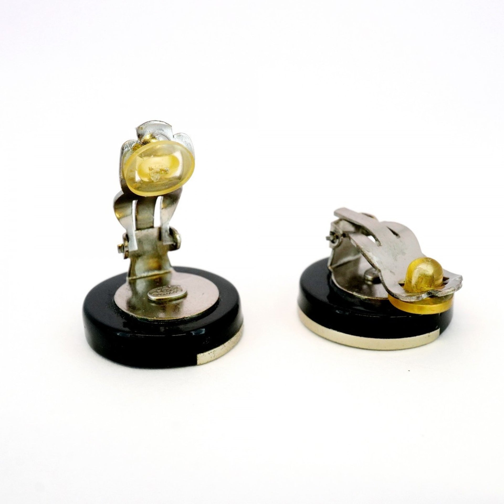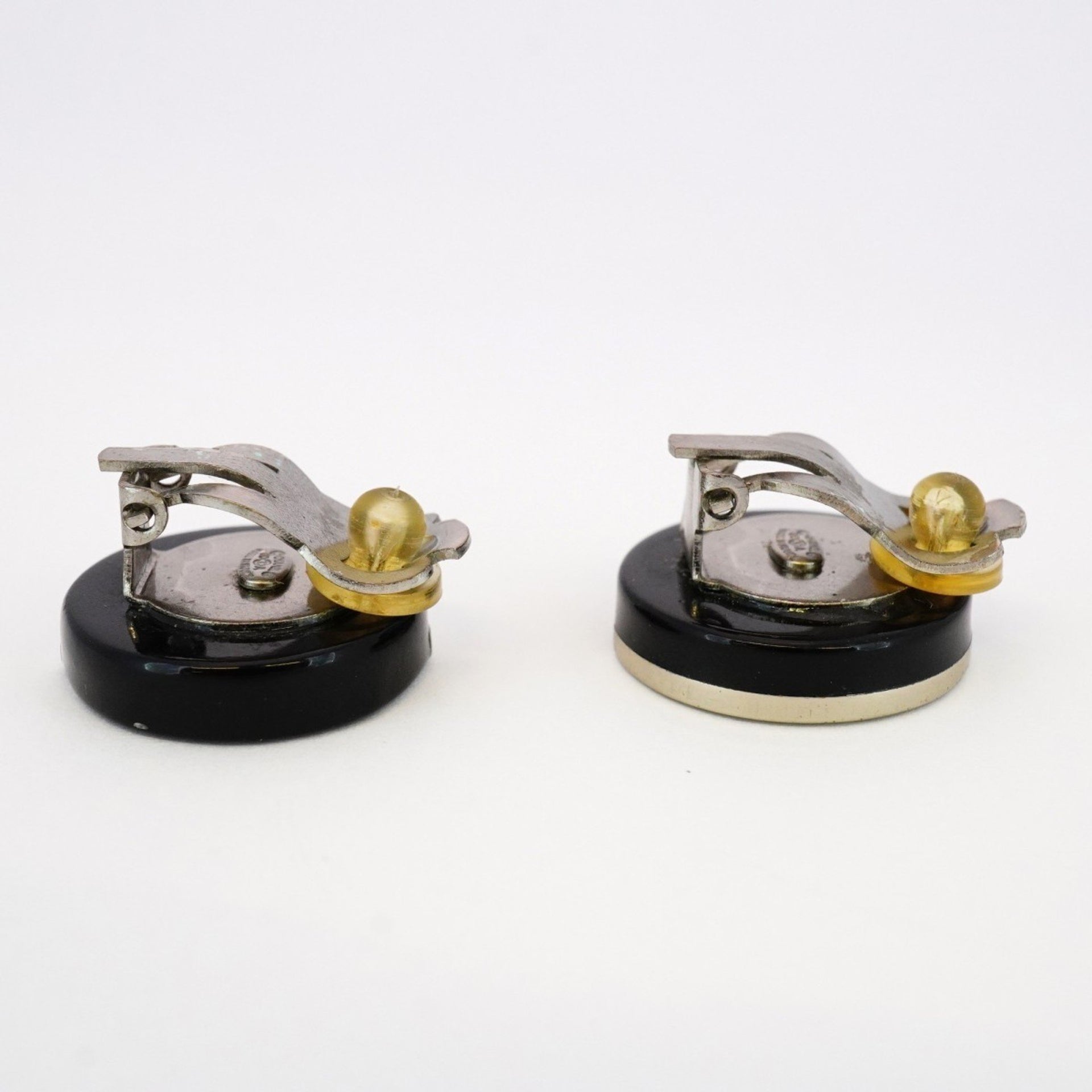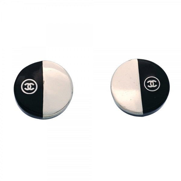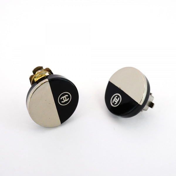 Chanel Coco Mark Two-Tone Circle Metal Earrings in Silver and Black for Women