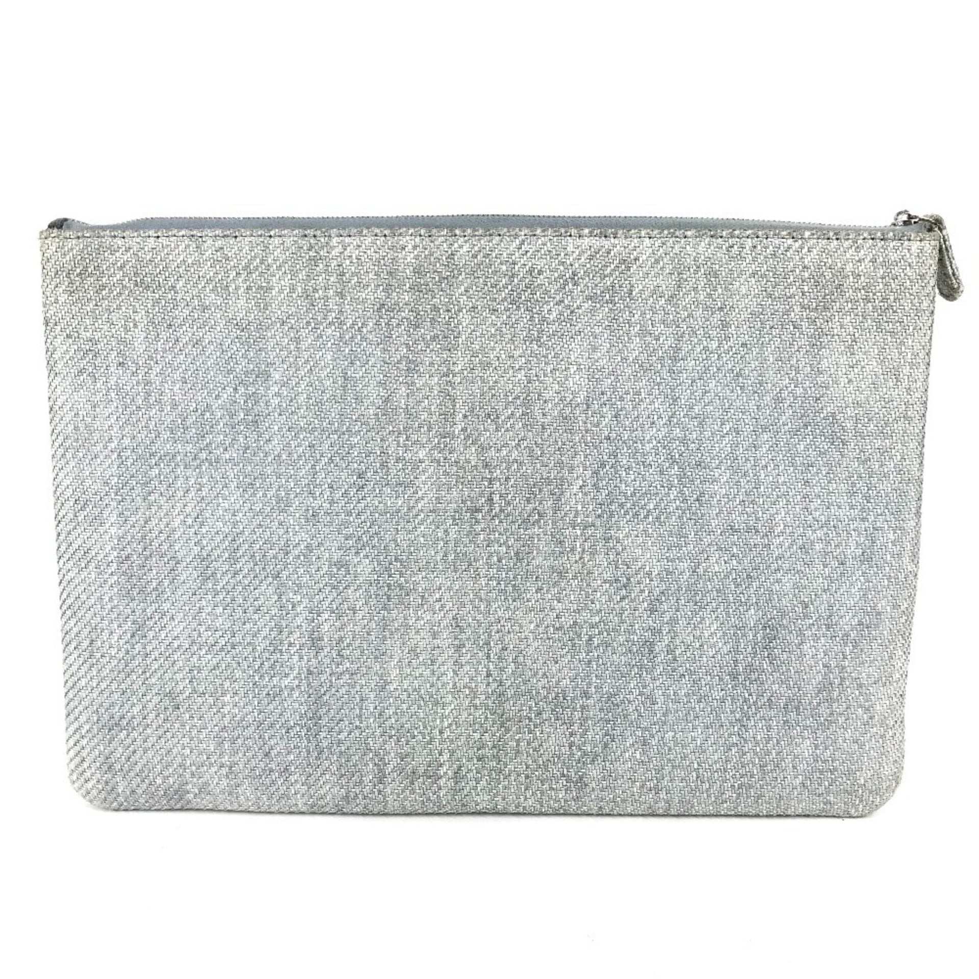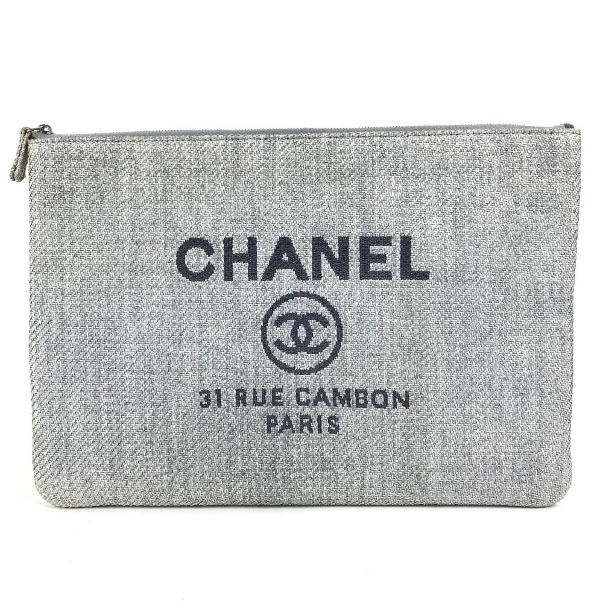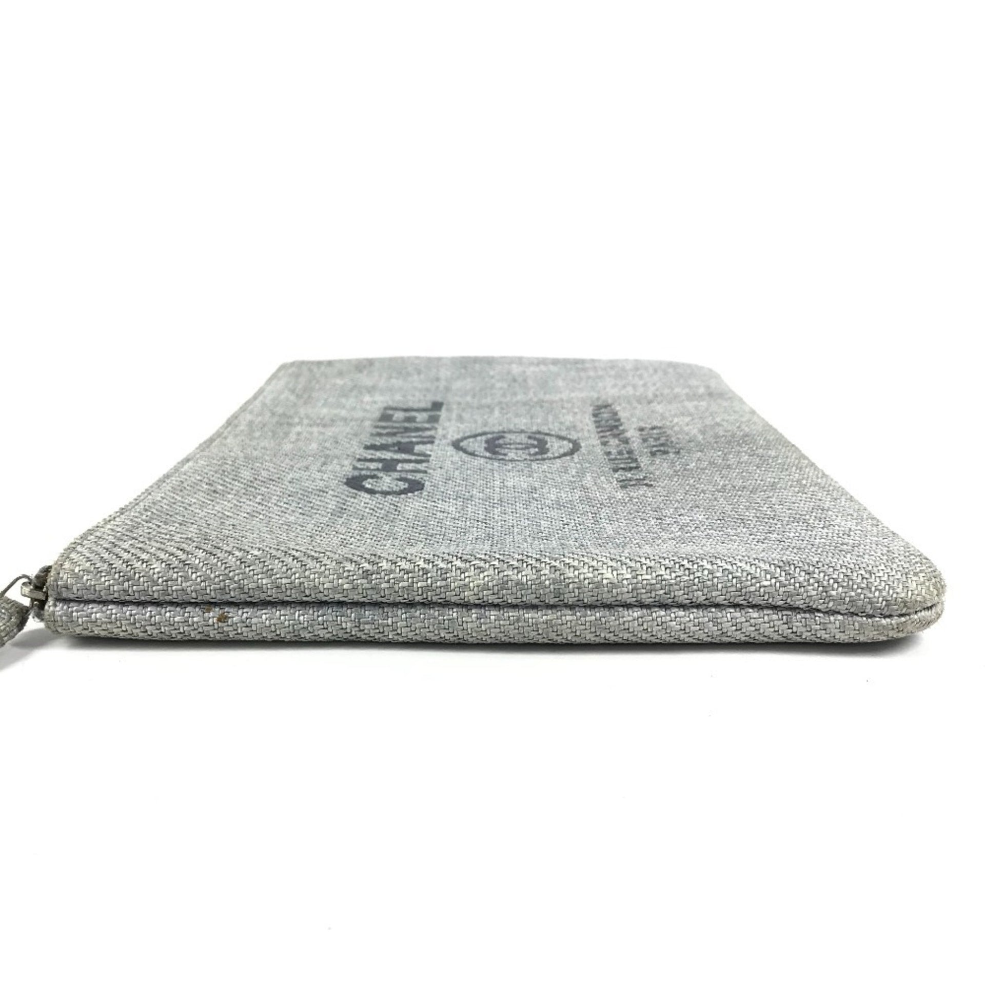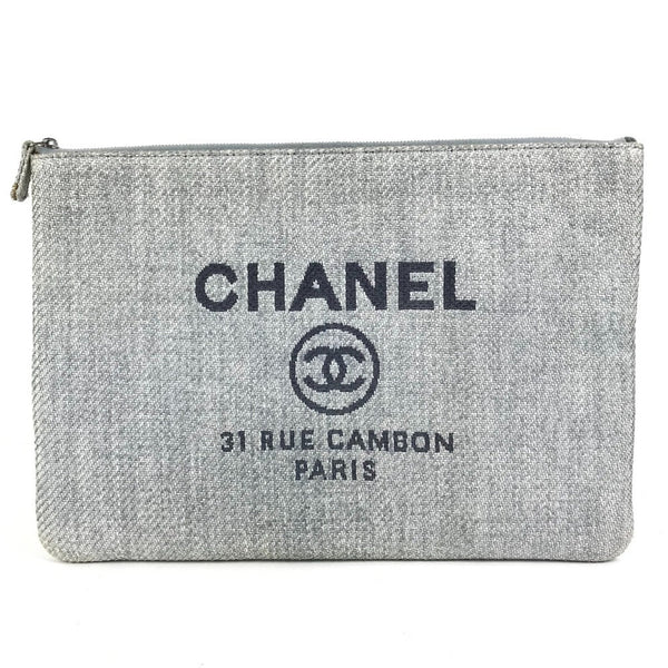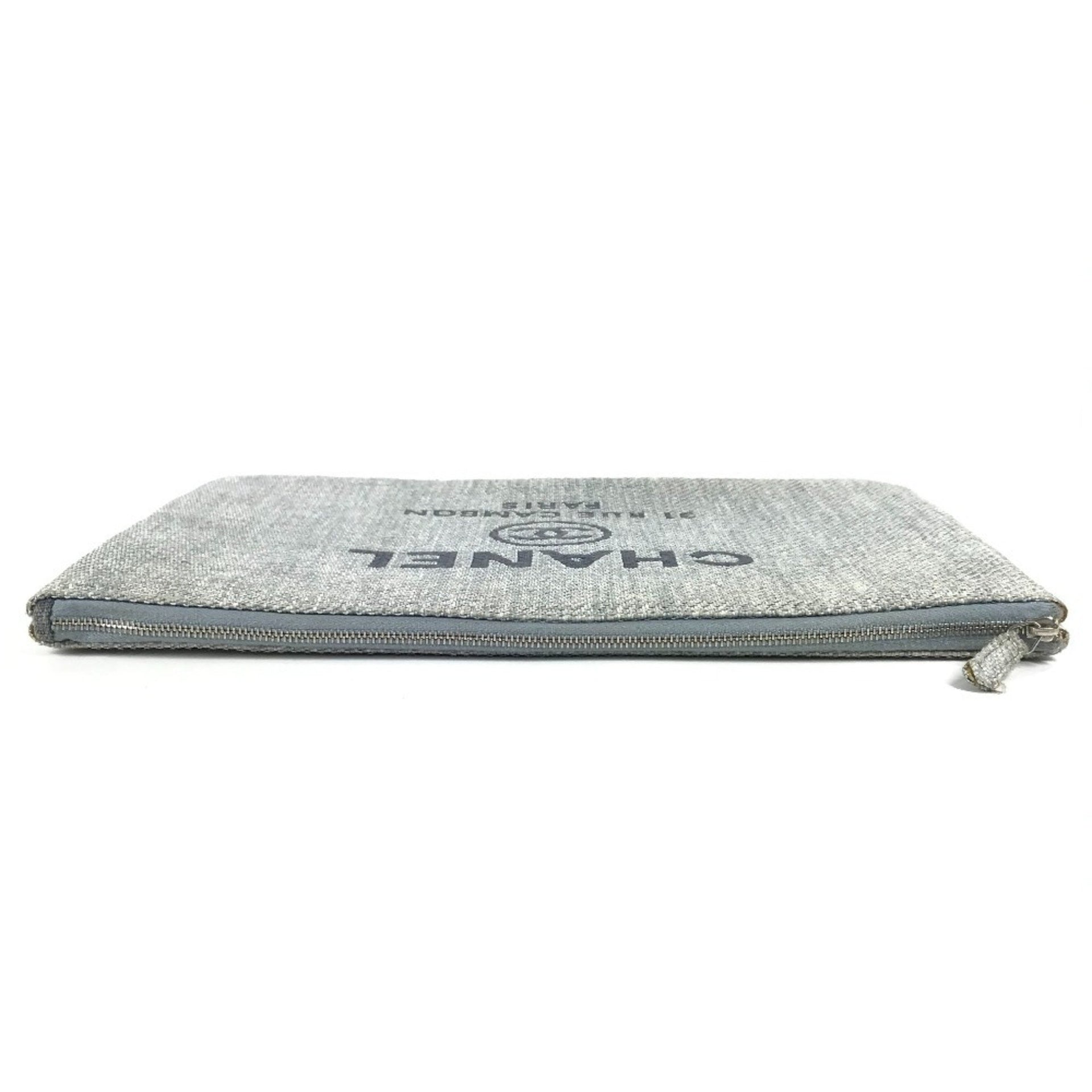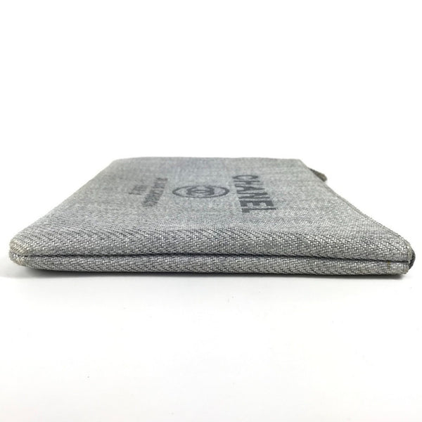 CHANEL Deauville Logo Pouch Bag Clutch Canvas Women\'s Blue