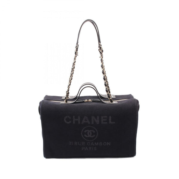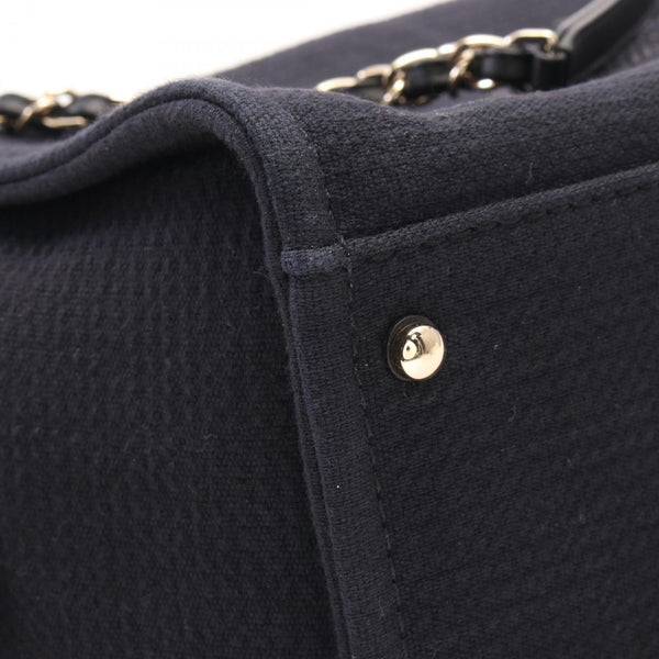 CHANEL Deauville Shoulder Bag Canvas Leather Women\'s Navy AS4166