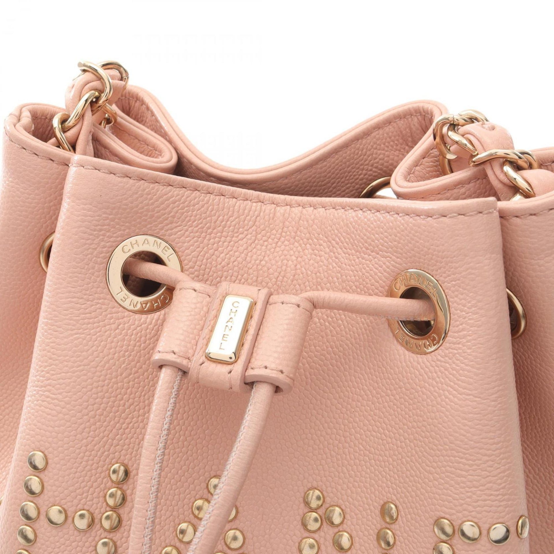 CHANEL Deauville Studded Shoulder Bag Calfskin (Cowhide) Women\'s Pink AS1045