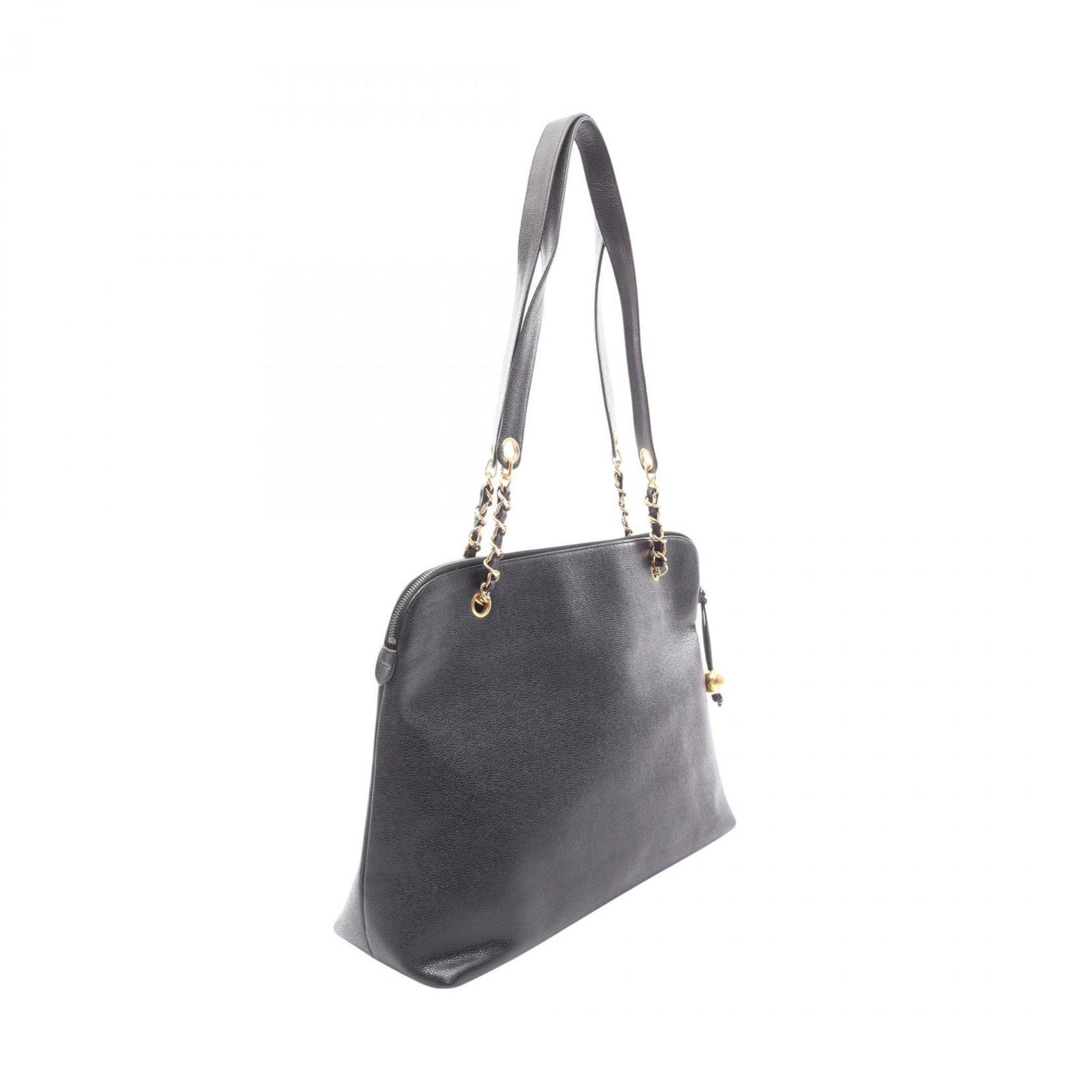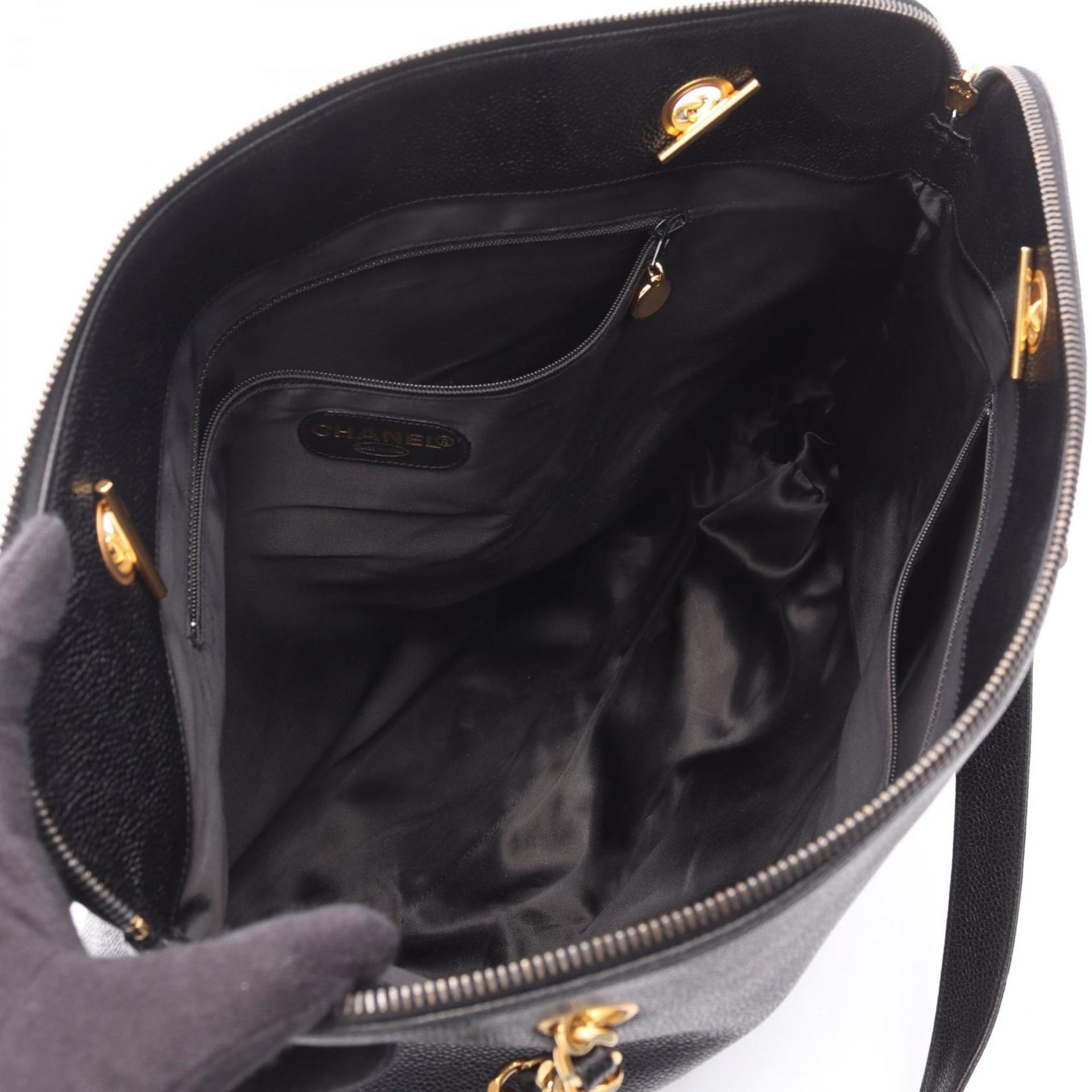 CHANEL Deka Coco Mark Tote Bag, Calfskin Leather, Women\'s, Black