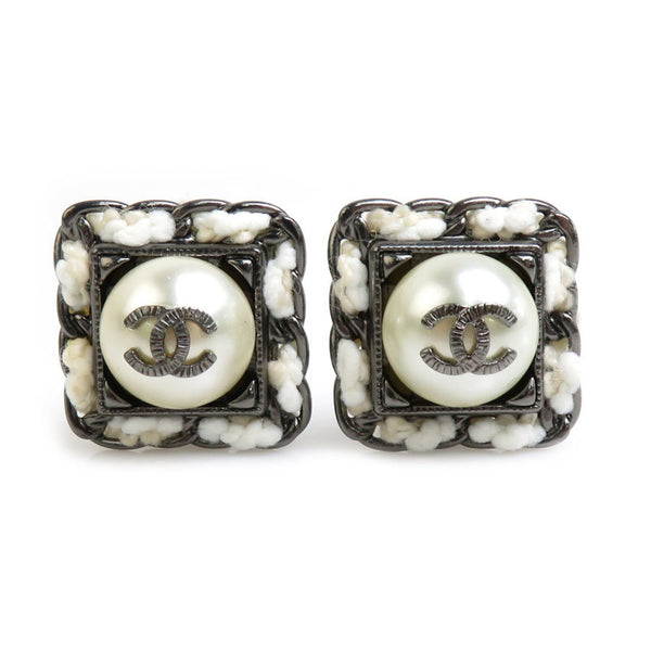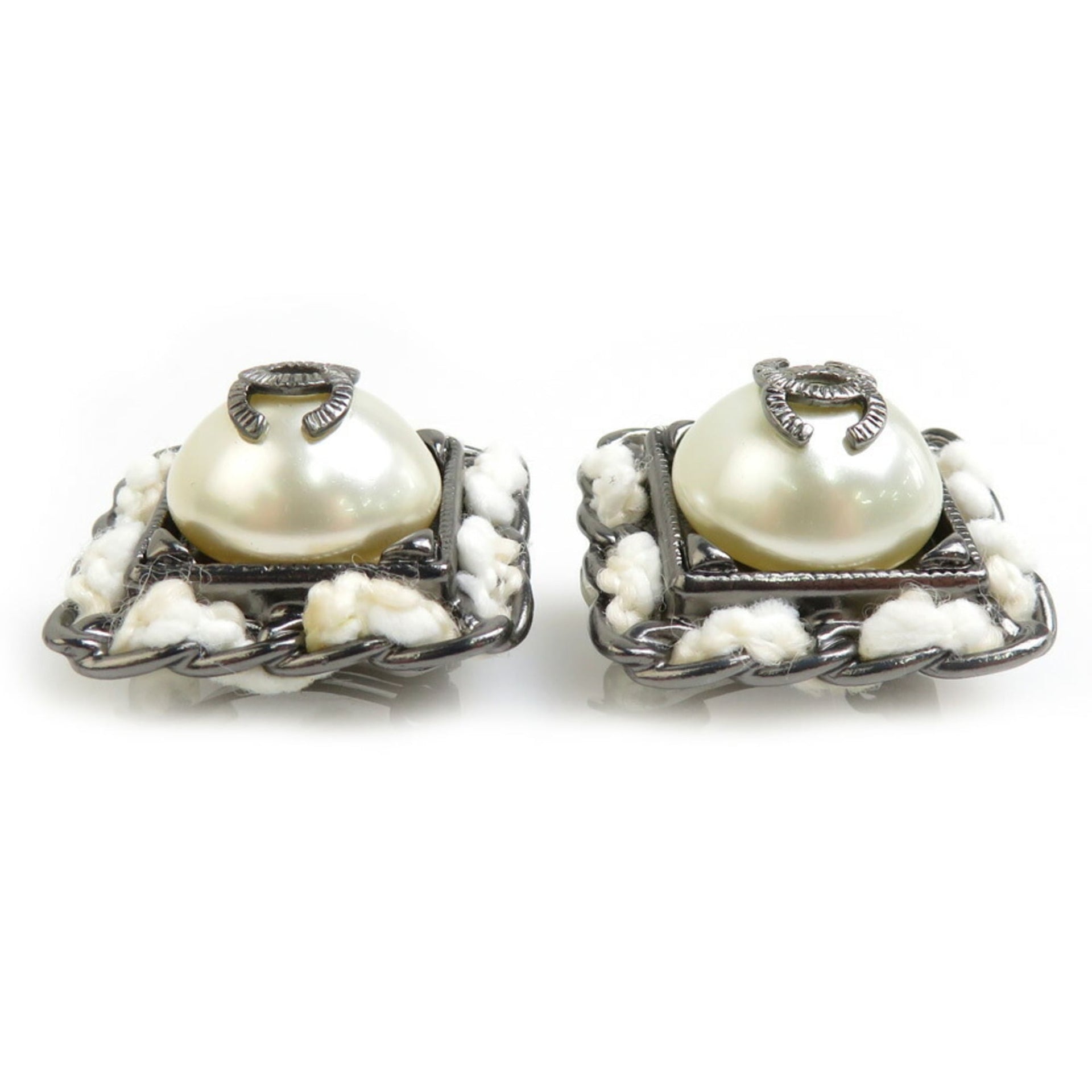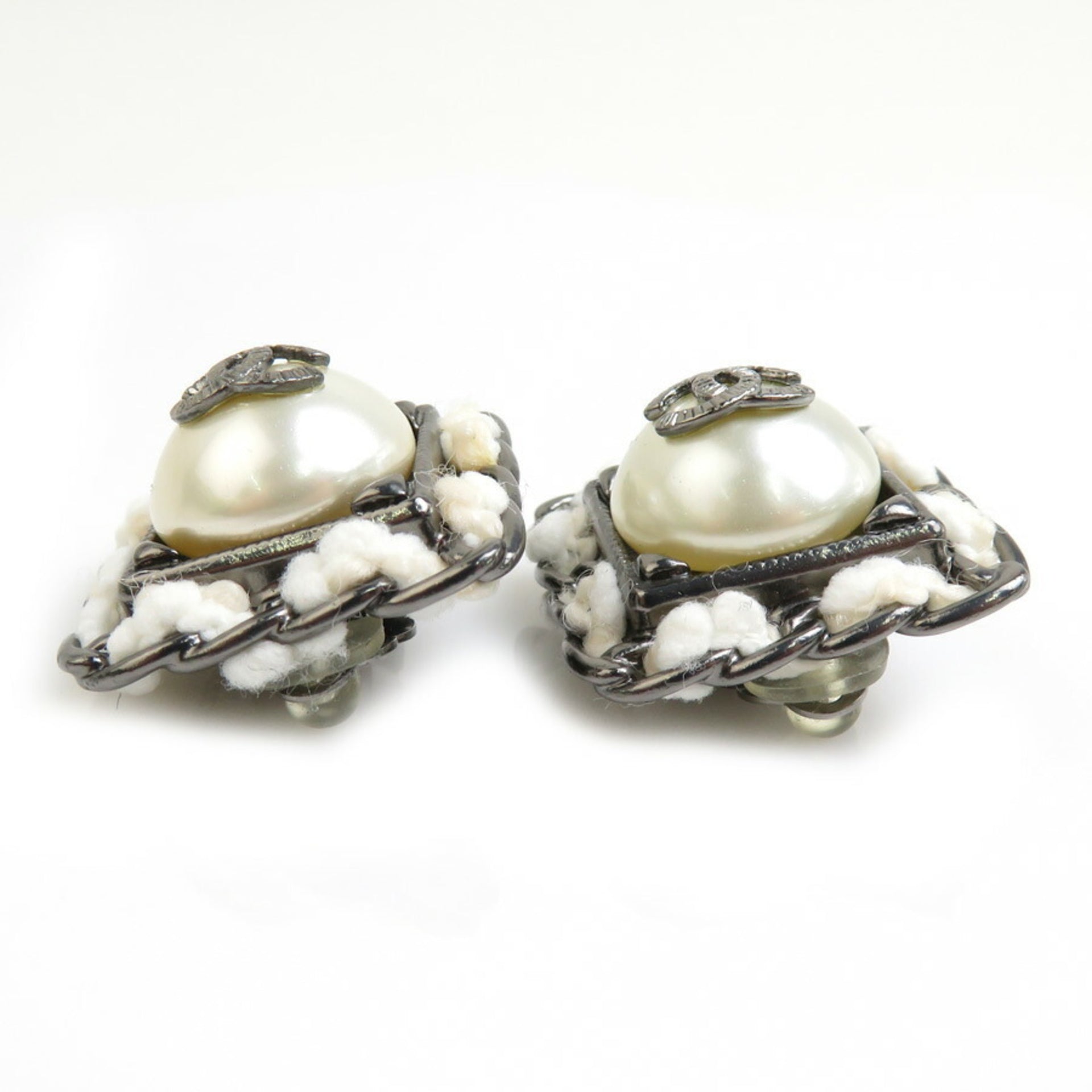 CHANEL Earrings Coco Mark Metal Faux Pearl Gunmetal White Women\'s e59783a