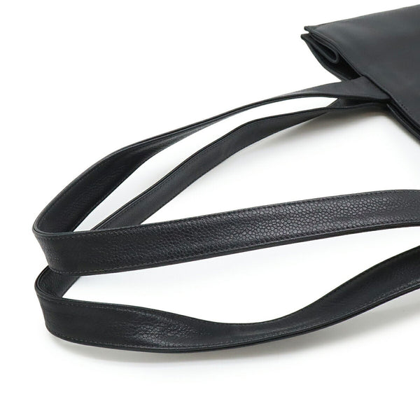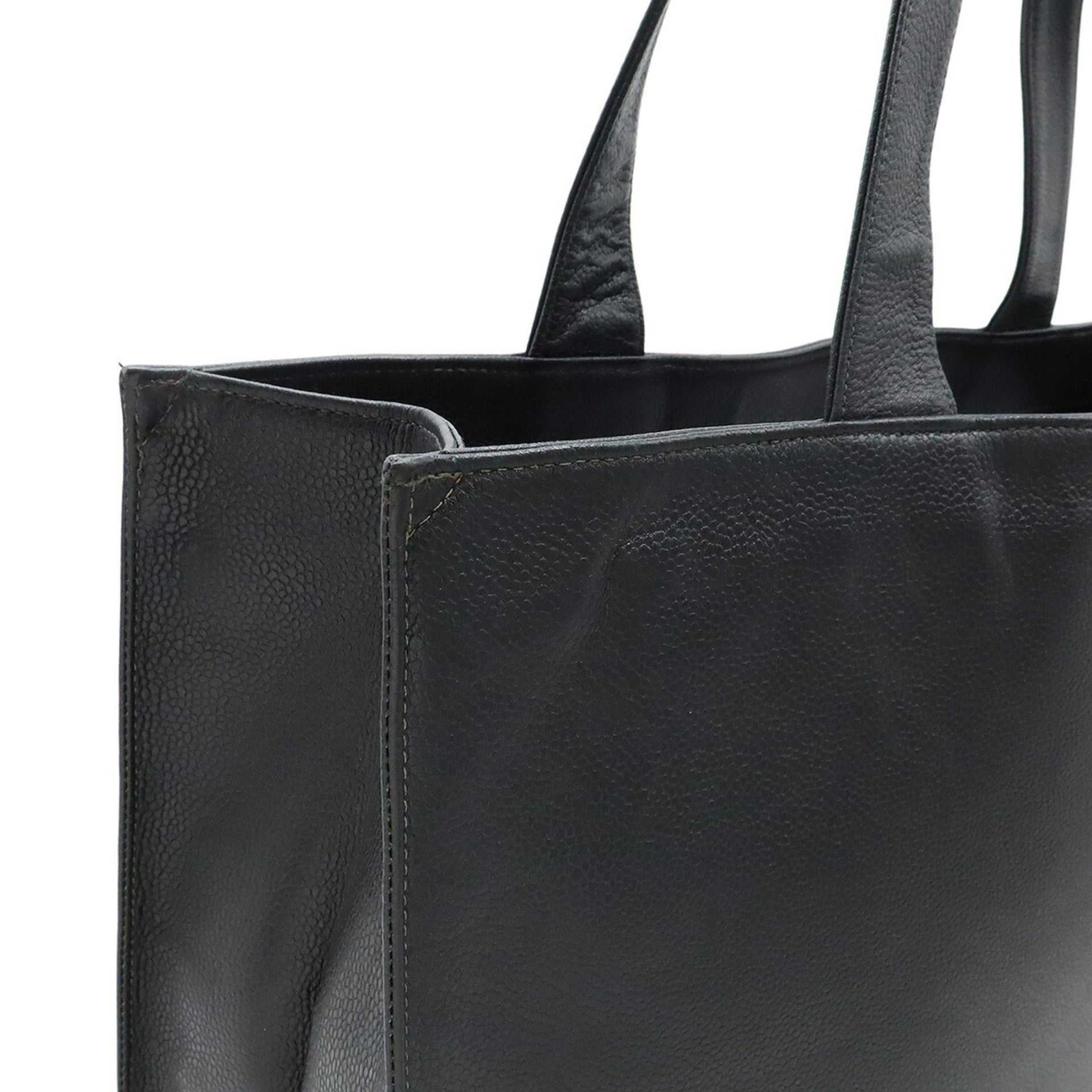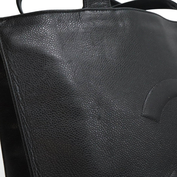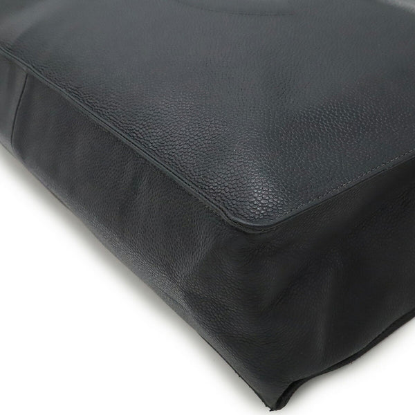 CHANEL Embroidered Tote Bag Shoulder Caviar Skin Leather Black