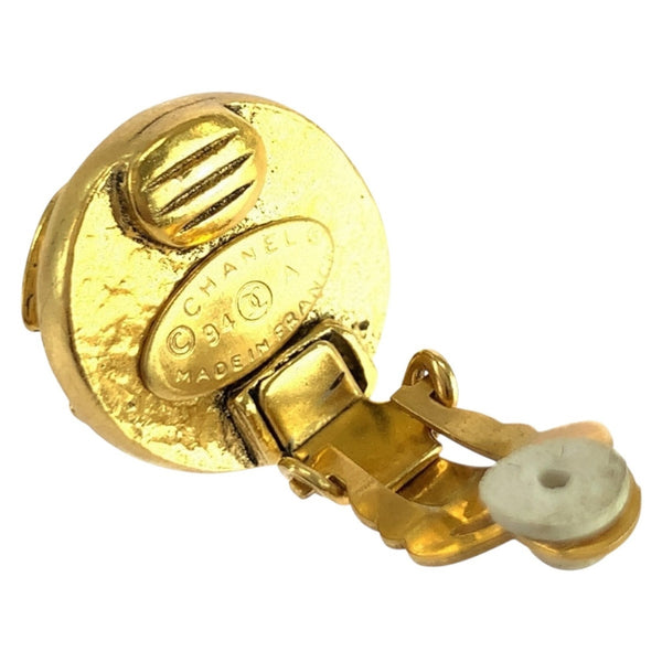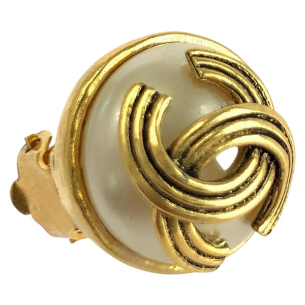 CHANEL Faux Pearl Coco Mark Gold and White Plated Earrings, 94, A Stamp, Women\'s