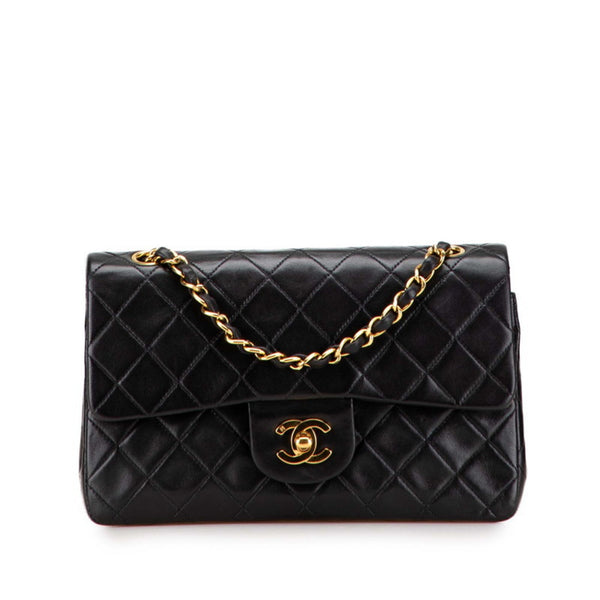 CHANEL Matelasse 23 Coco Mark Double Flap Chain Shoulder Bag in Black Lambskin for Women