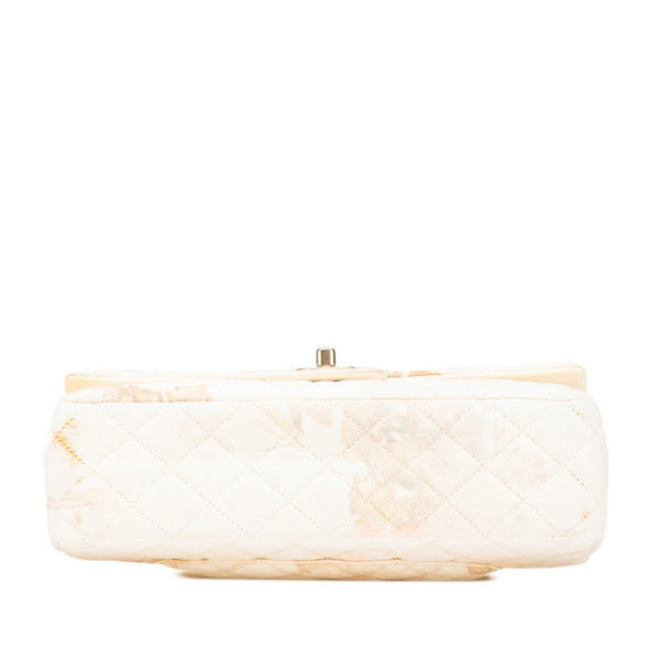 CHANEL Matelasse 25 Coco Mark Double Flap Gold Hardware Flower Chain Shoulder Bag White Pink Cotton Leather Women\'s