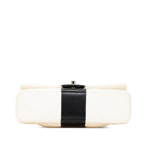 CHANEL Matelasse 25 Coco Mark Double Flap Two-Tone Chain Shoulder Bag in White and Black Lambskin for Women