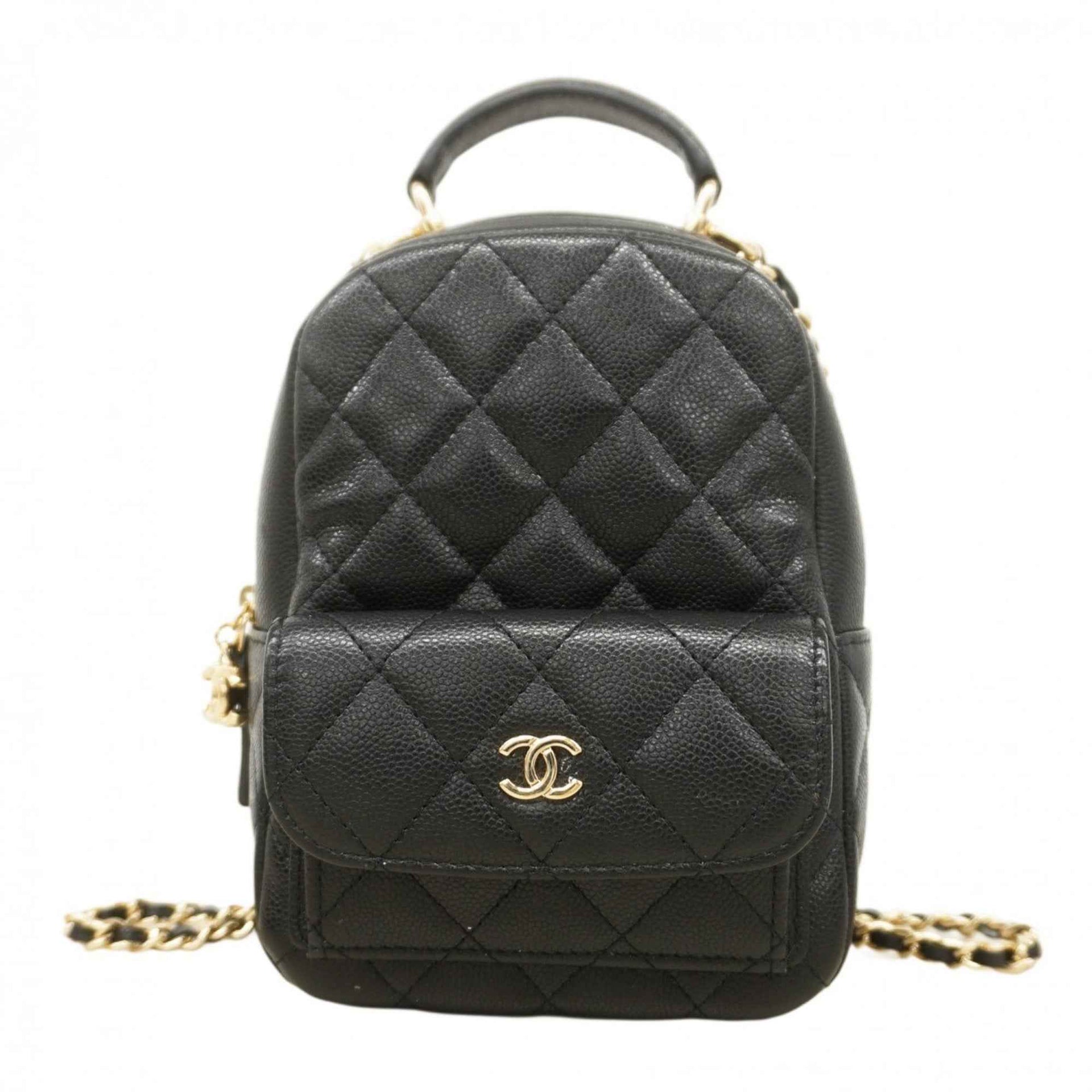 Chanel Matelasse Backpack/Daypack with Chain Shoulder Strap, Caviar Leather, Black Champagne, 2-Way Bag, Women\'s, P2157554