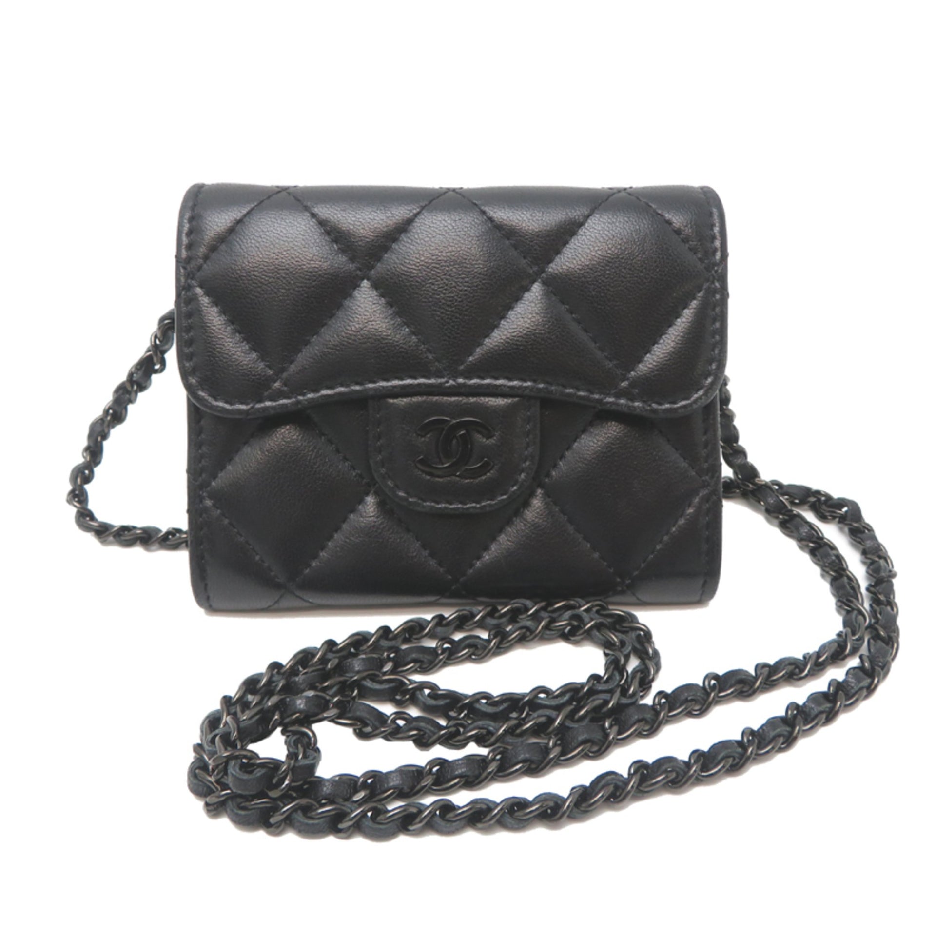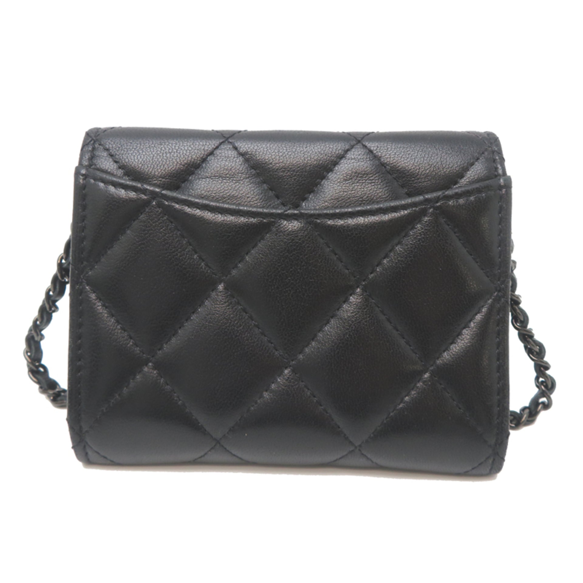 Chanel Matelasse Chain Wallet, Women\'s Card Case, AP0238, Lambskin, Black