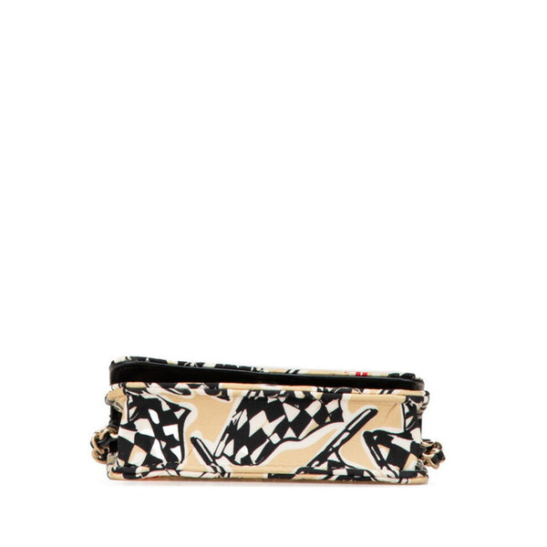 CHANEL Matelasse Checkered Flag Coco Mark Mini Crossbody Chain Shoulder Bag in Beige and Black Cotton Leather. Women\'s.
