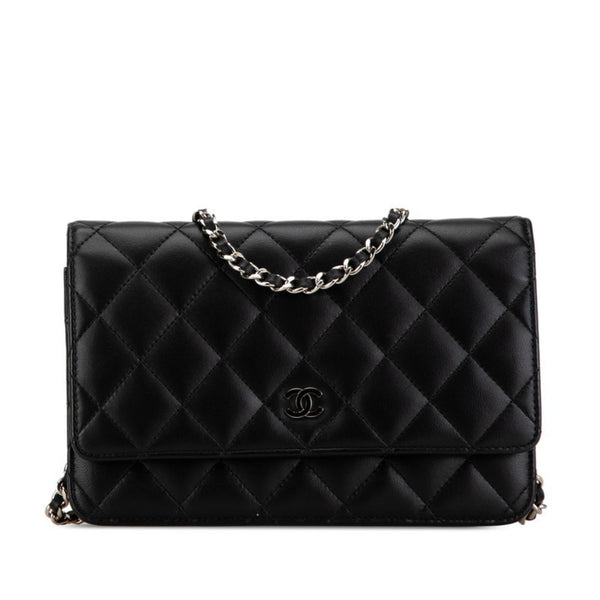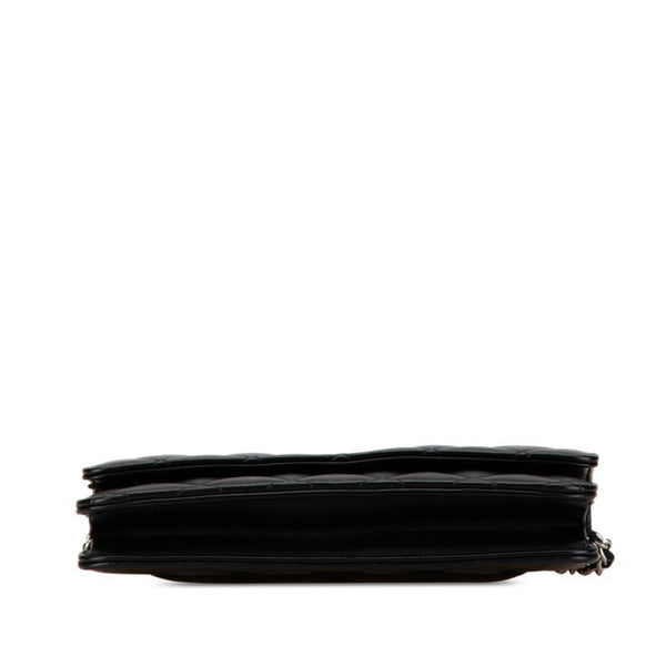 CHANEL Matelasse Coco Mark Crossbody Chain Shoulder Wallet in Black Lambskin for Women