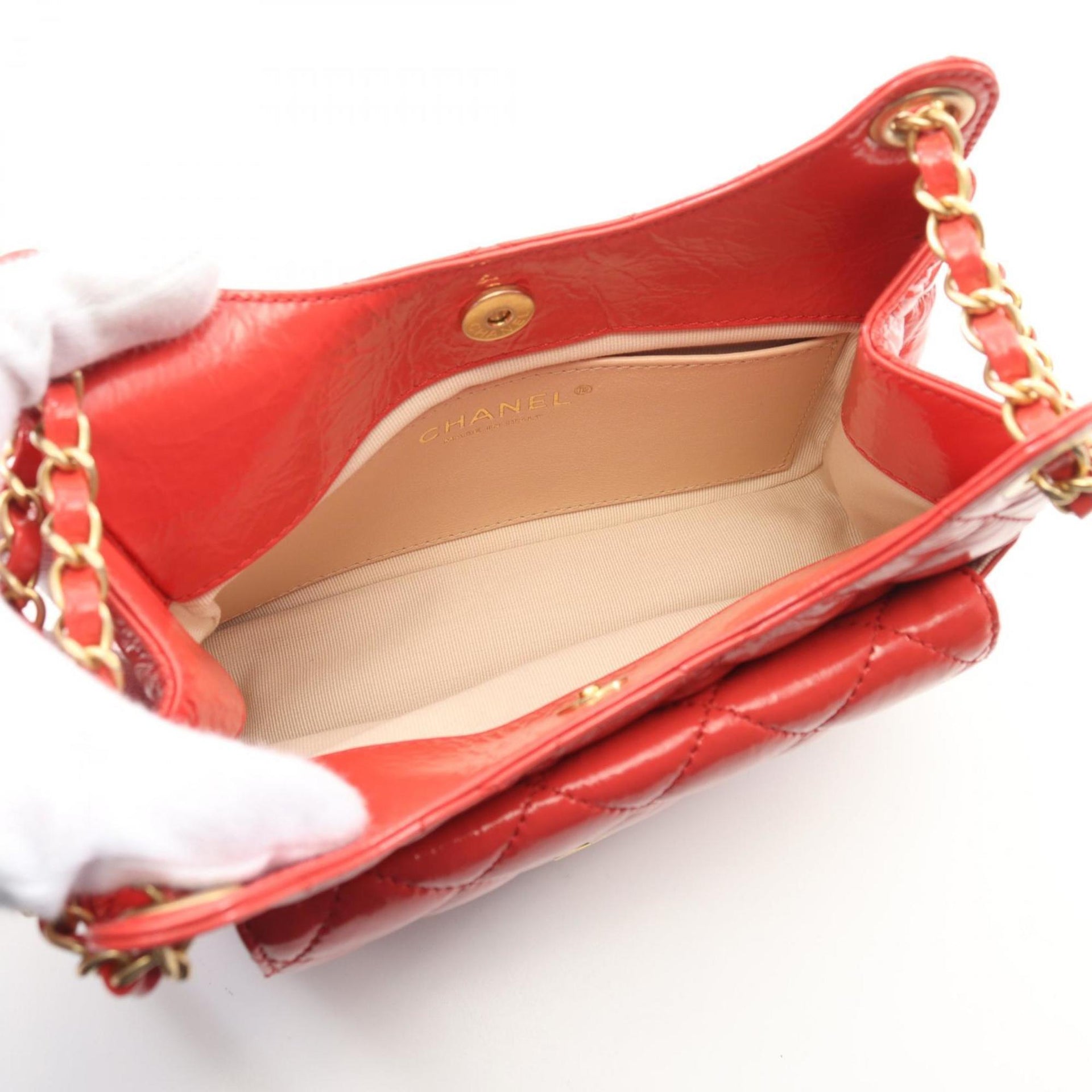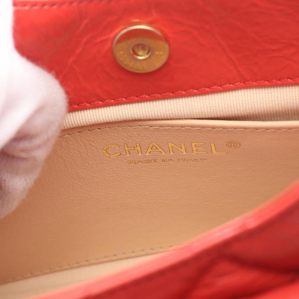 CHANEL Matelasse Hobo Shoulder Bag Patent Leather Women\'s Orange