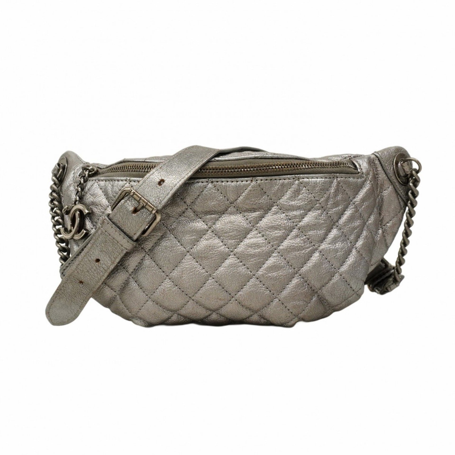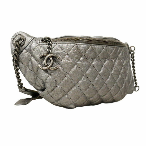 Chanel Matelasse Leather Body Bag, Silver, Women\'s