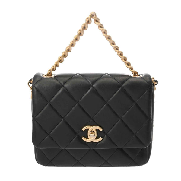 CHANEL Matelasse Mini Chain Shoulder Bag with Side Logo, Black, Women\'s Lambskin, AB Grade, Pre-Owned, Ginzo