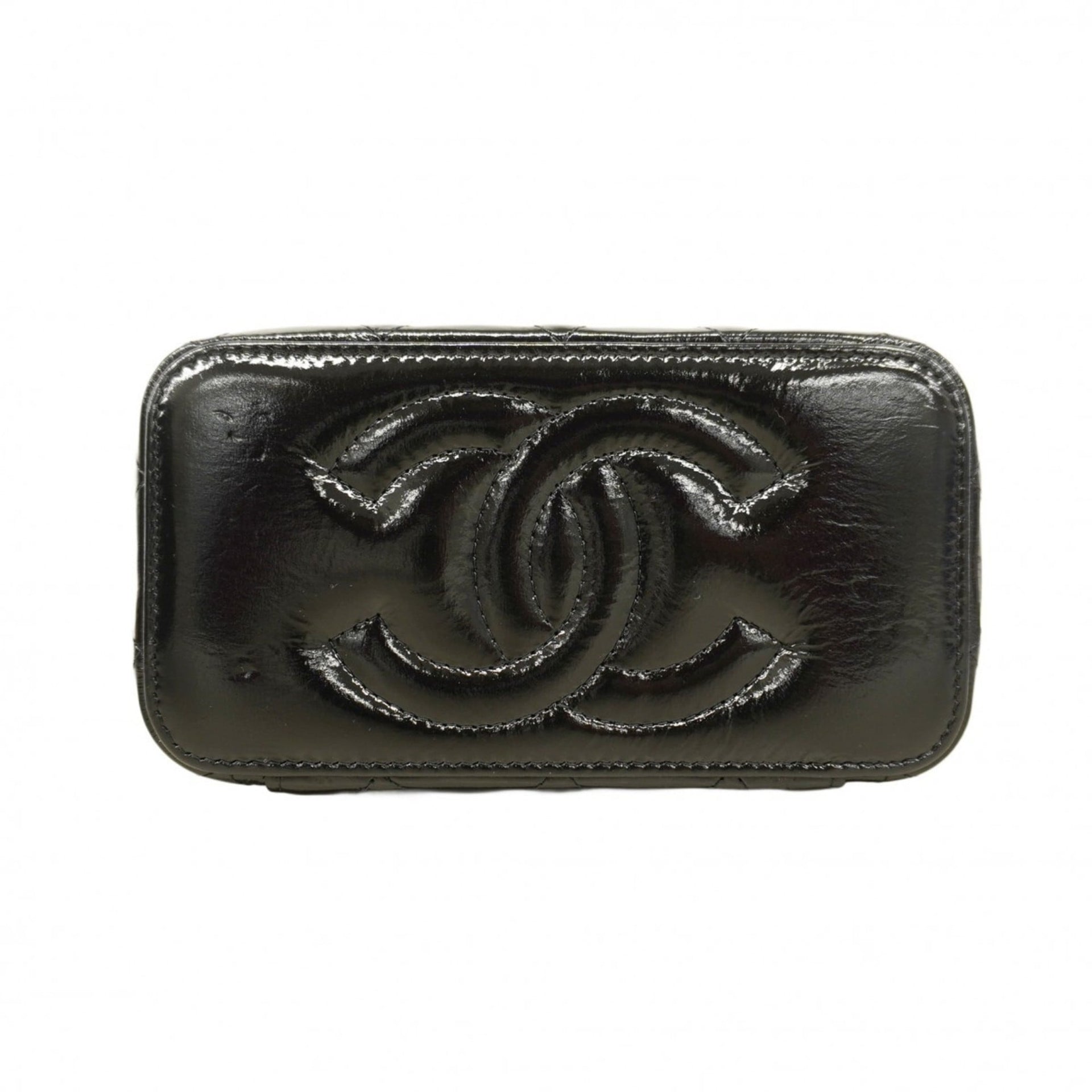 Chanel Matelasse Vanity Bag with Chain Shoulder in Shiny Lambskin, Black and Champagne