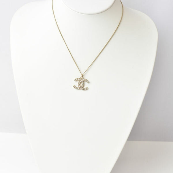 Chanel Necklace Pendant CHANEL Coco Mark CC Rhinestone Gold B12