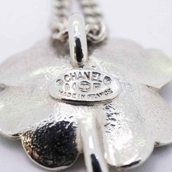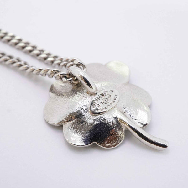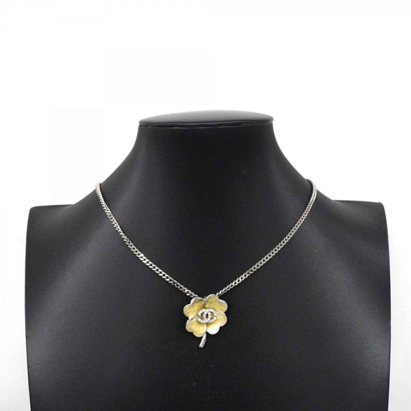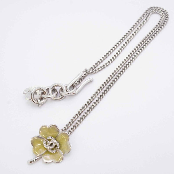Chanel necklace with Coco Mark clover motif, metal rhinestones, silver and green for women