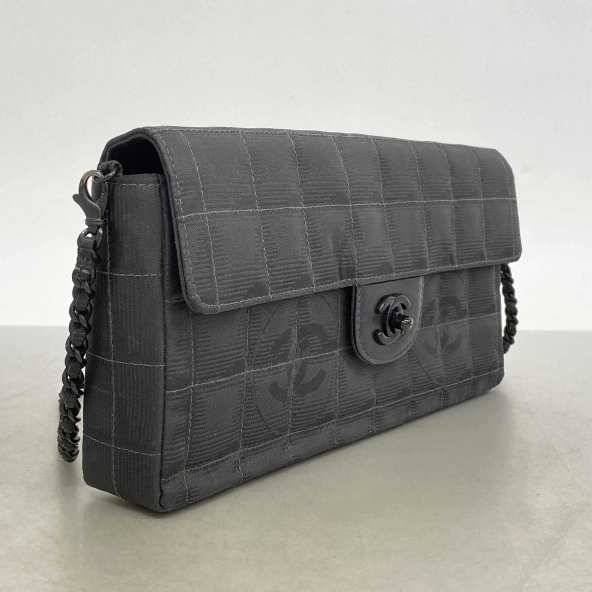 Chanel New Travel Chain Shoulder Bag, Nylon, Black, Women\'s