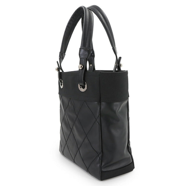 CHANEL Paris Biarritz PM Tote Bag, PVC, Nylon, Leather, Black, A34208, Silver Hardware